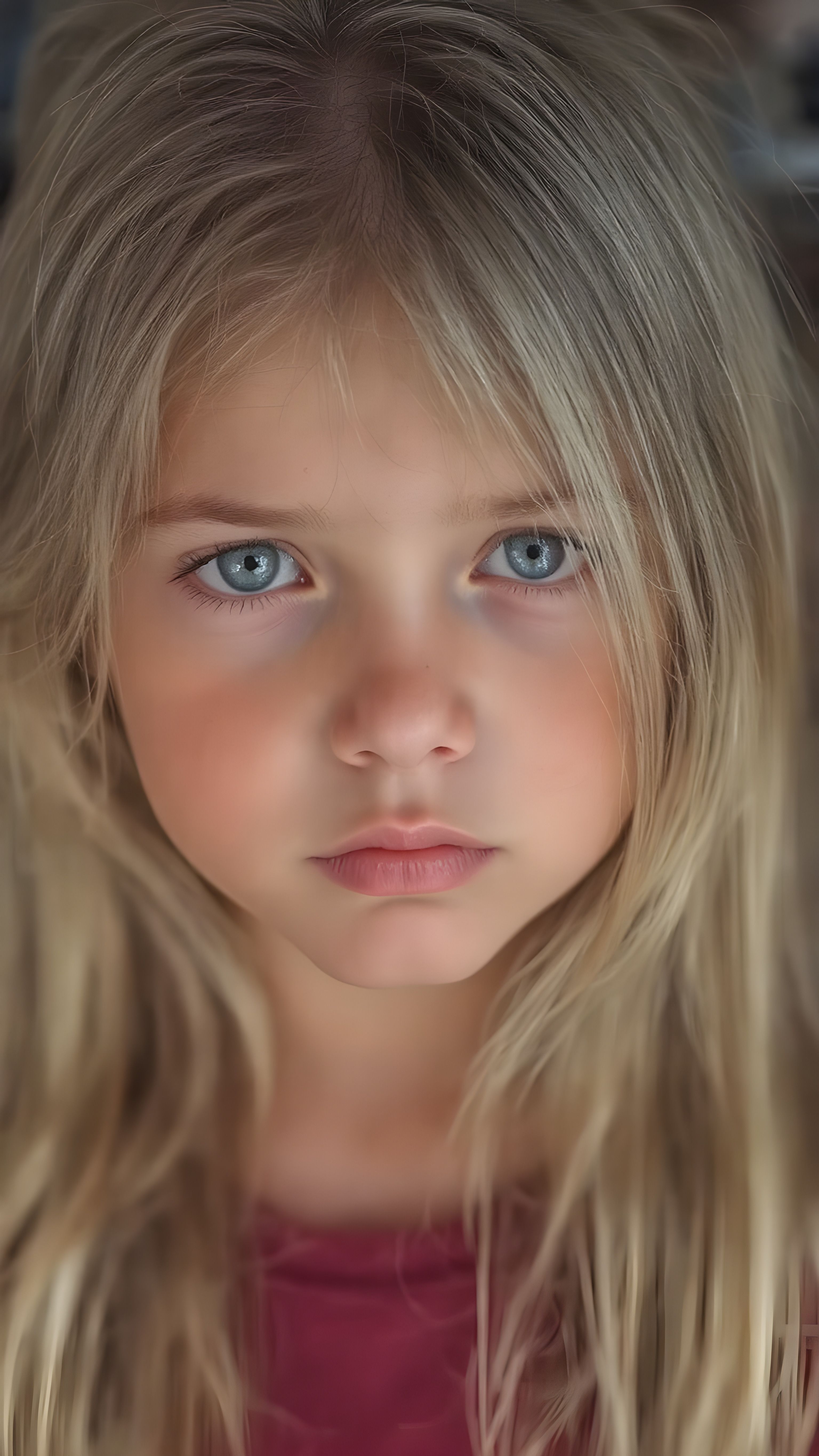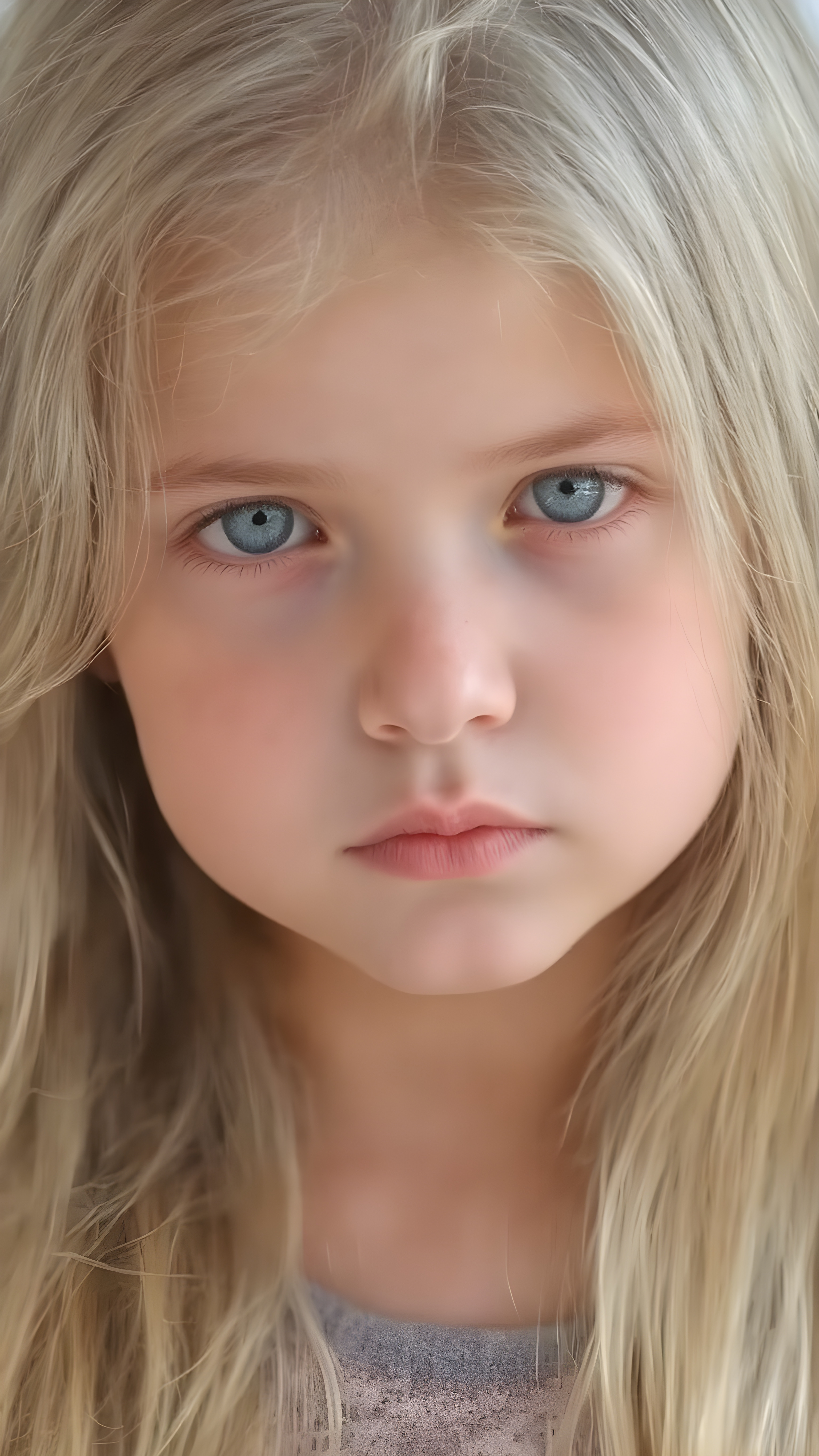 A (((very cute young girl), with (((extremely long, straight, thick, untucked natural white golden blonde hair))), which flows down to her hips, and (bright natural blue eyes), that reflect a soft glow, framing a (full, round face) with (full, defined lips) that are painted in (soft, natural tones) and (barely parted) to convey a sense of fatigue. Her expression is one of (extreme tiredness) and her hair is (pretty much untucked) with (pretty natural amber eyes) that convey a sense of (natural beauty). A ((perfectly detailed and evenly distributed 16K resolution, with intricate details and a warm, inviting tone, that gives off a (soft, natural glow))) completes this image, which exudes an (extreme feeling of tiredness) that is both inviting and (hyper realistic).