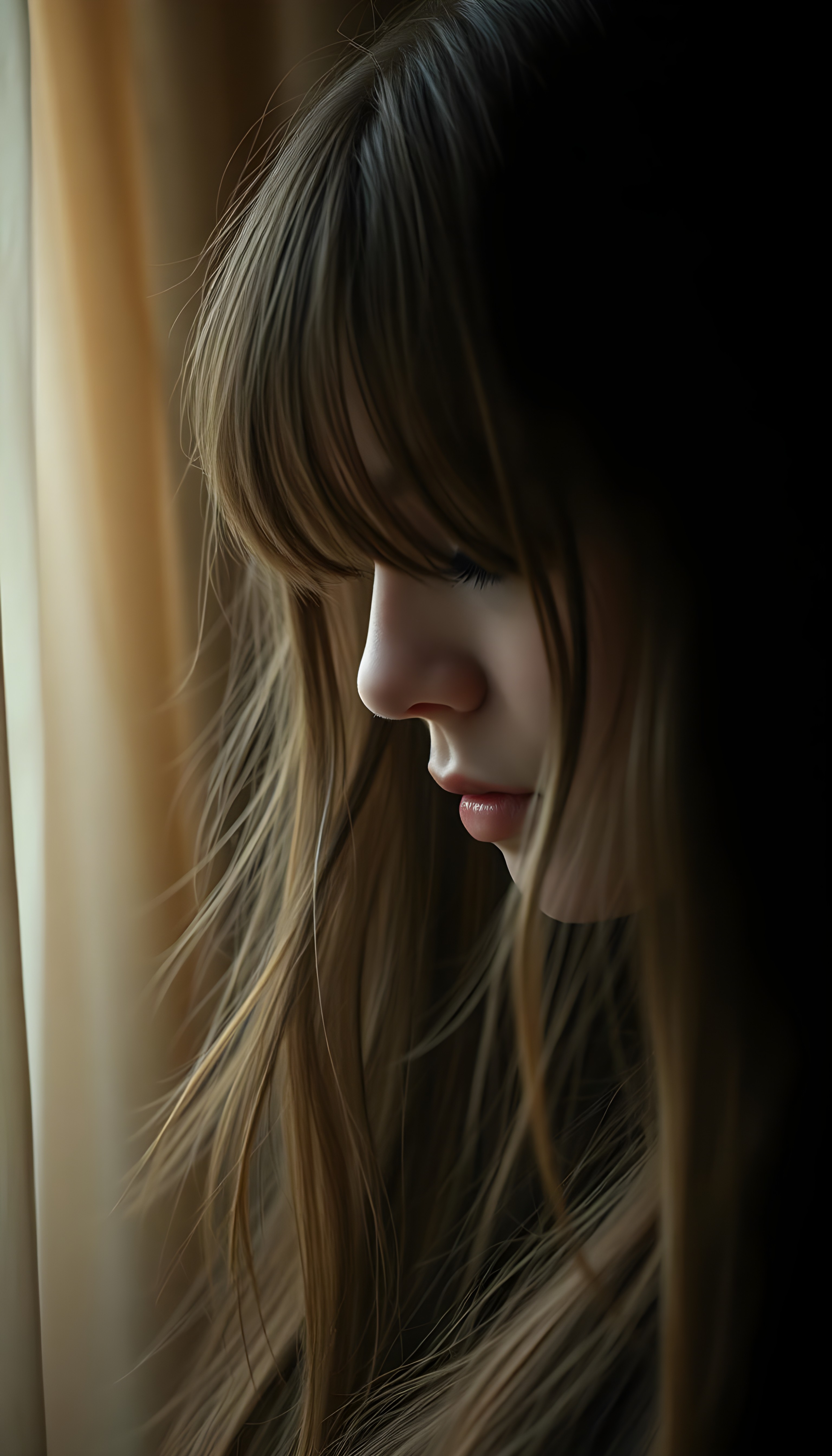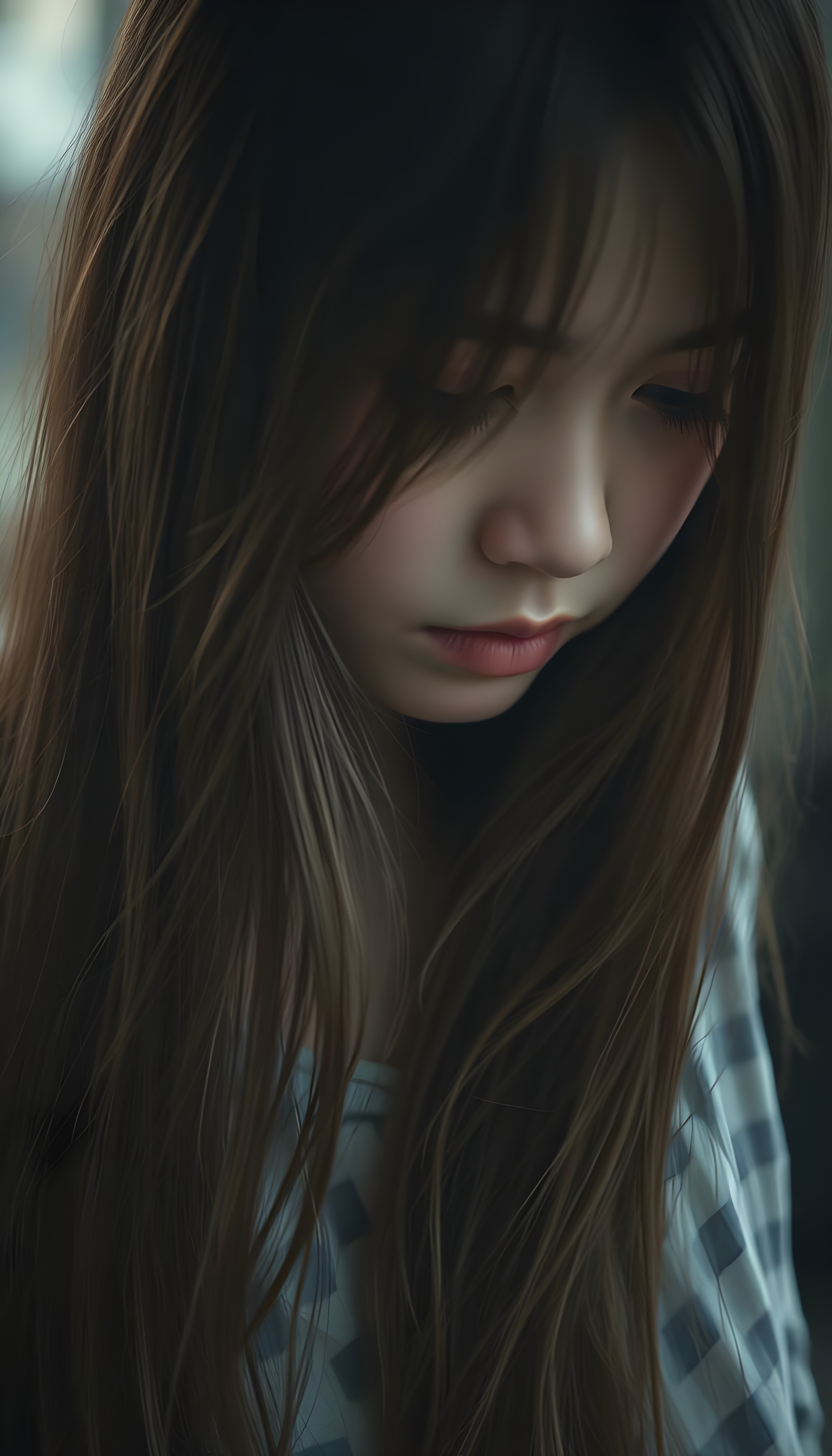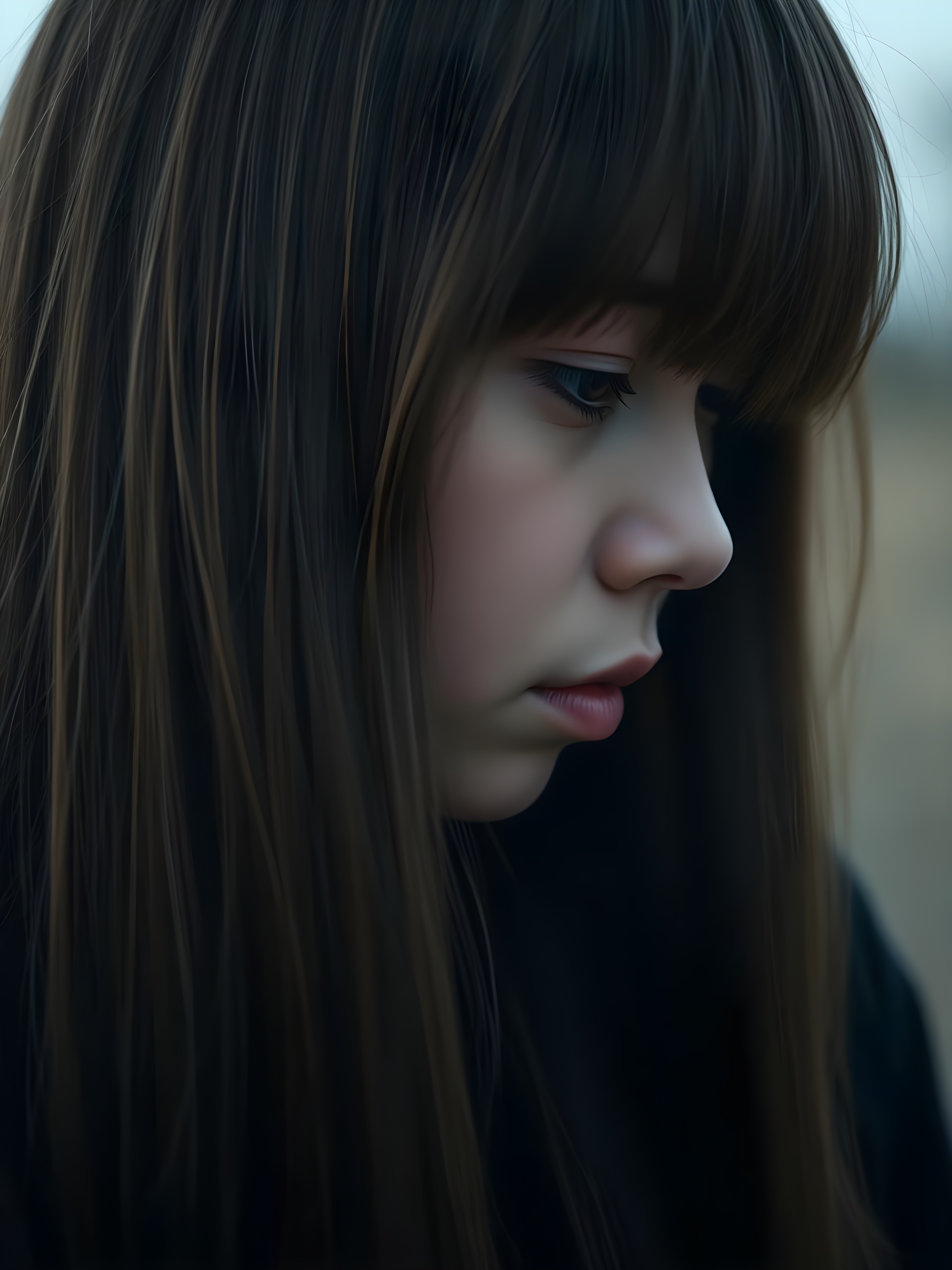 so tragisch auch diese Tatsache sein mag: der Prompt zaubert wunderschöne Bilder eines traurigen Mädchens: