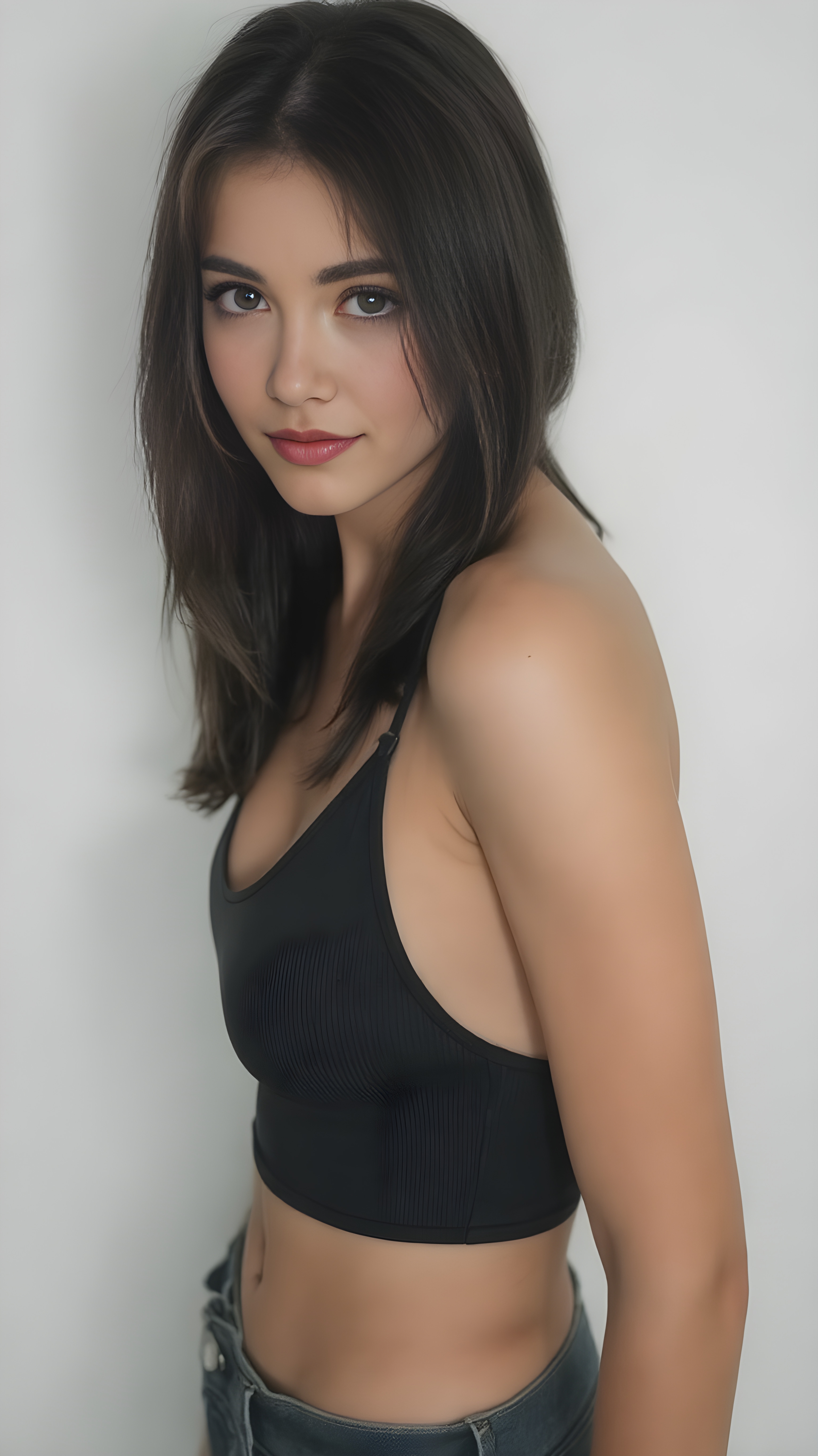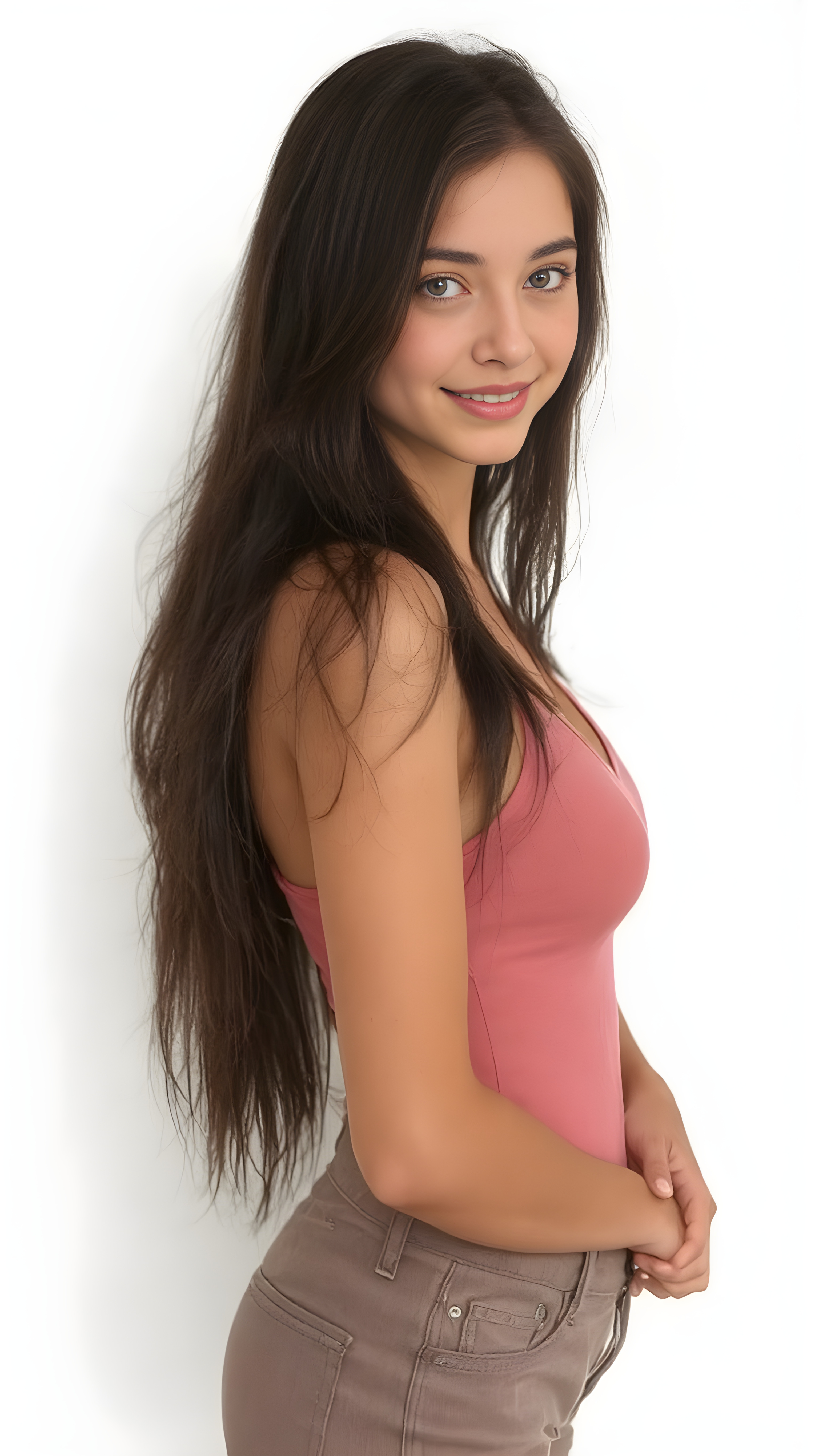 Derselbe Prompt generiert in der Regel ein ähnliches Bild. Hier ein Versuch, neun Mal unterschiedliche Bilder zu generieren. Während die Haarfarbe klar definiert wird, lassen wir die Kleiderfarbe frei durch die KI wählen: