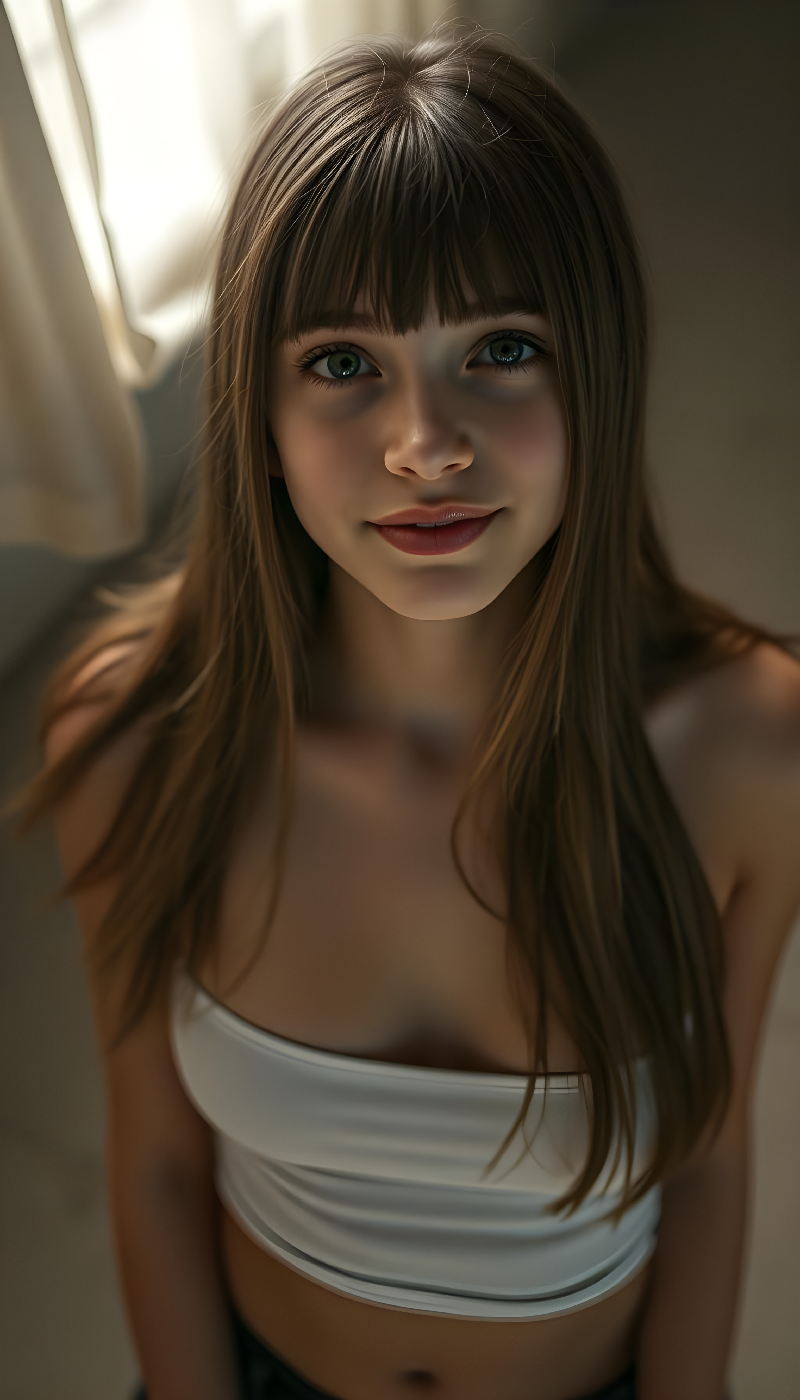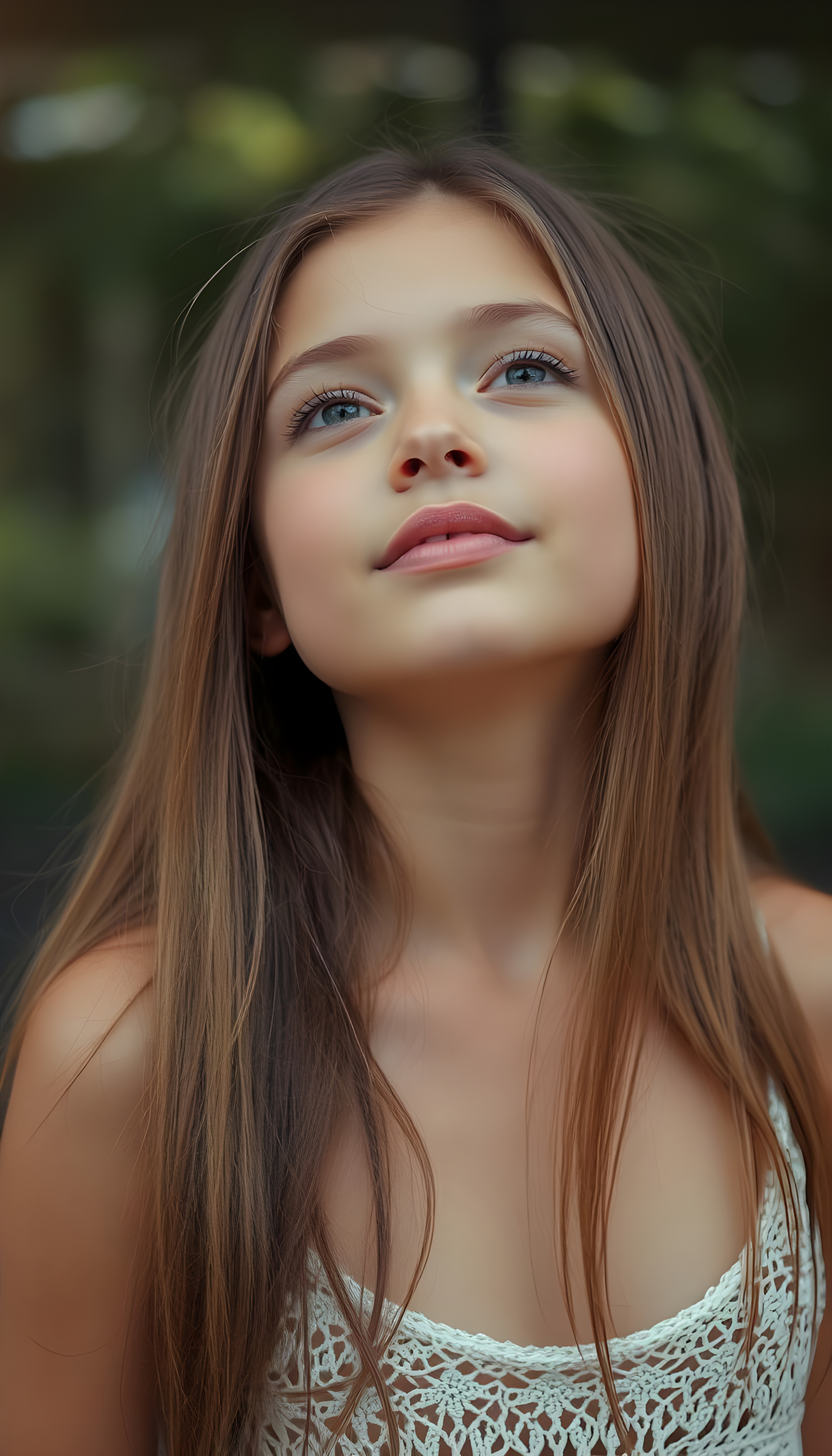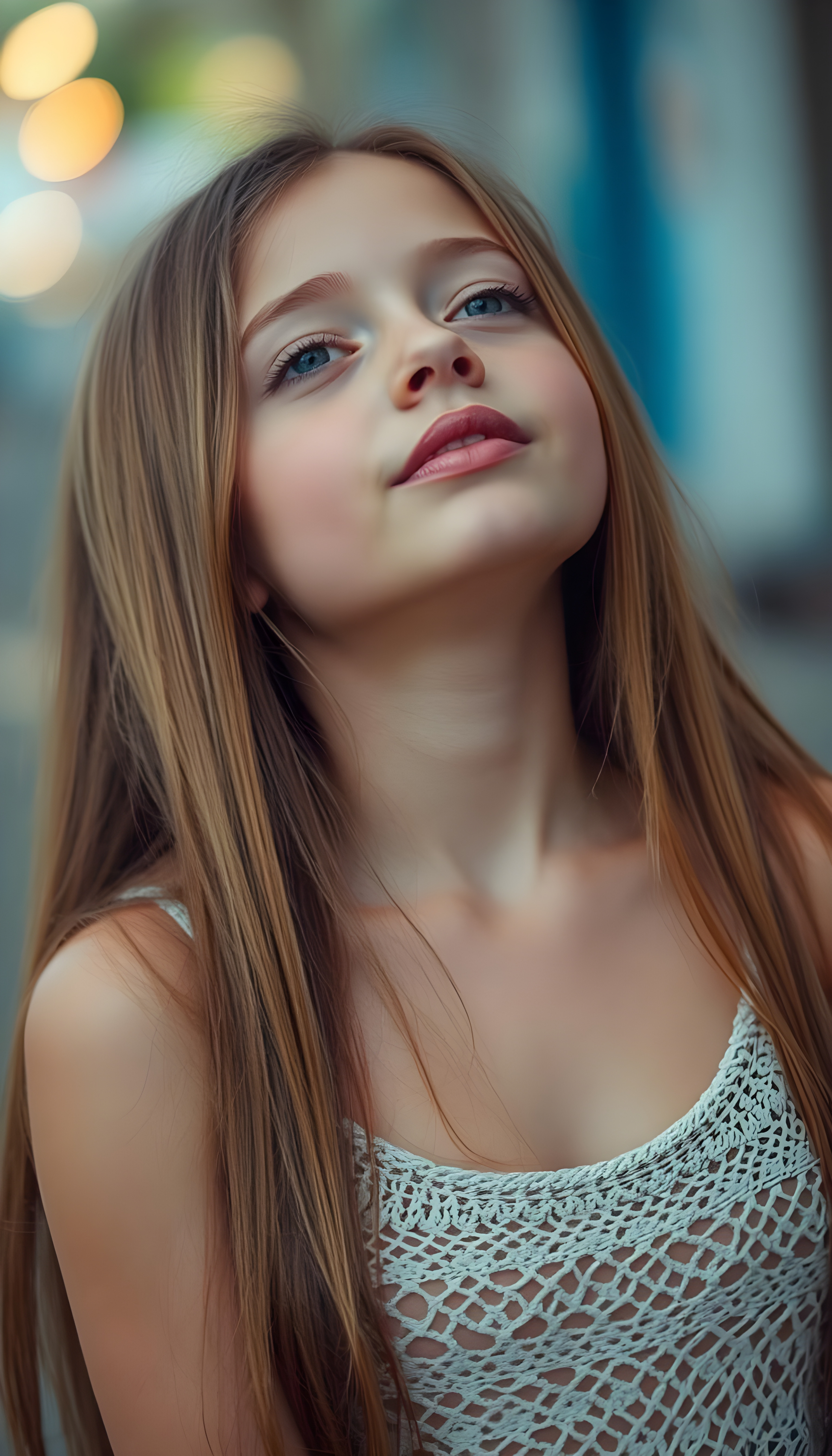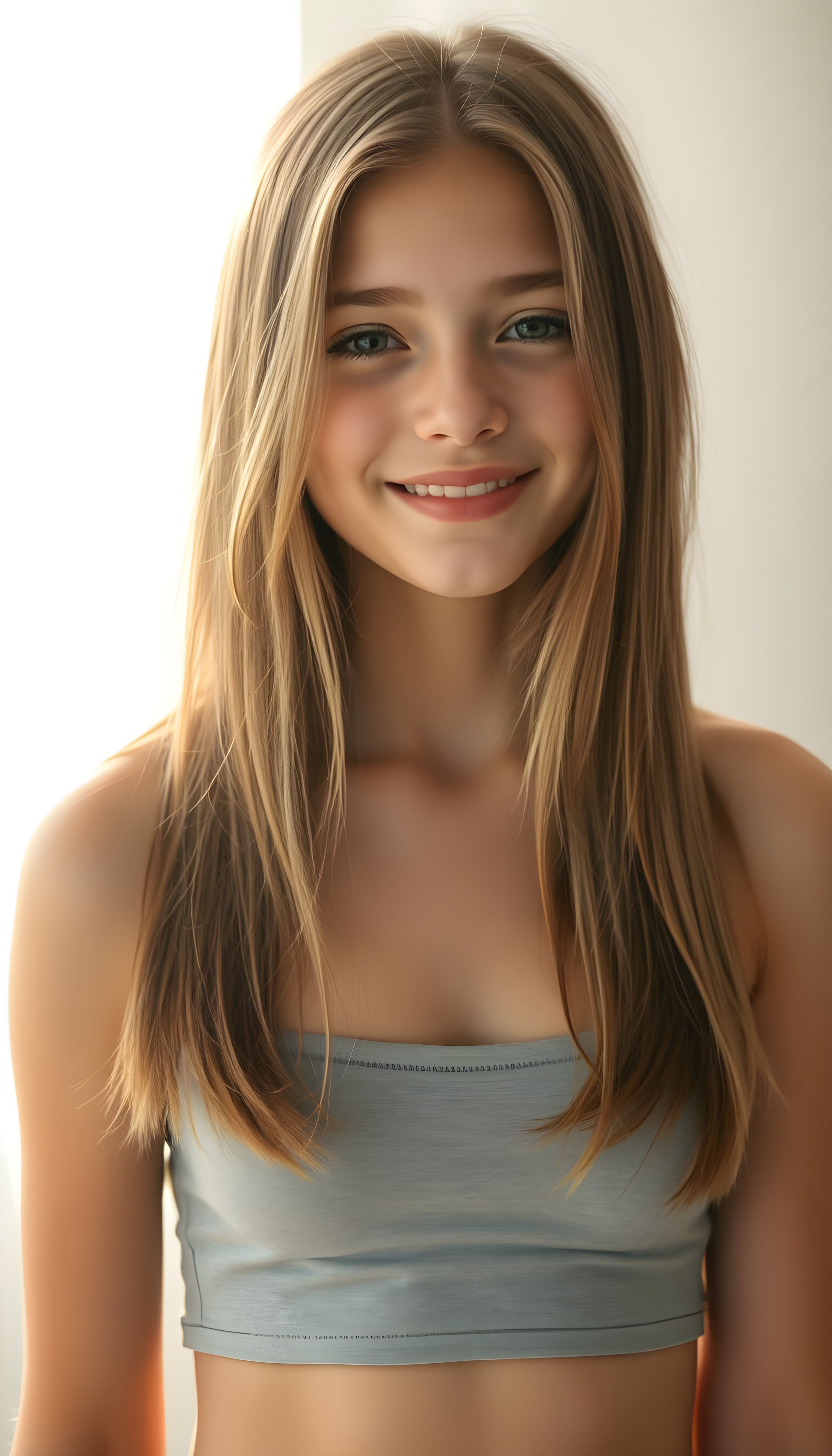 Die KI generiert makellos, neigt zur absoluten Perfektion und führt zu einer Verzerrung bezüglich Schönheitsideal. KI erstellte Bilder können (wenn man sich dies nicht bewusst ist) zu einem Realitätsverlust führen. Im folgenden Beispiel wird ein junges Mädchen erstellt, welches alle Gefahren von KI Bilder vereint. Jung, makellose Haut, langes Haar, pralle nicht allzu grosse Brüste und ein verführerischer Blick.