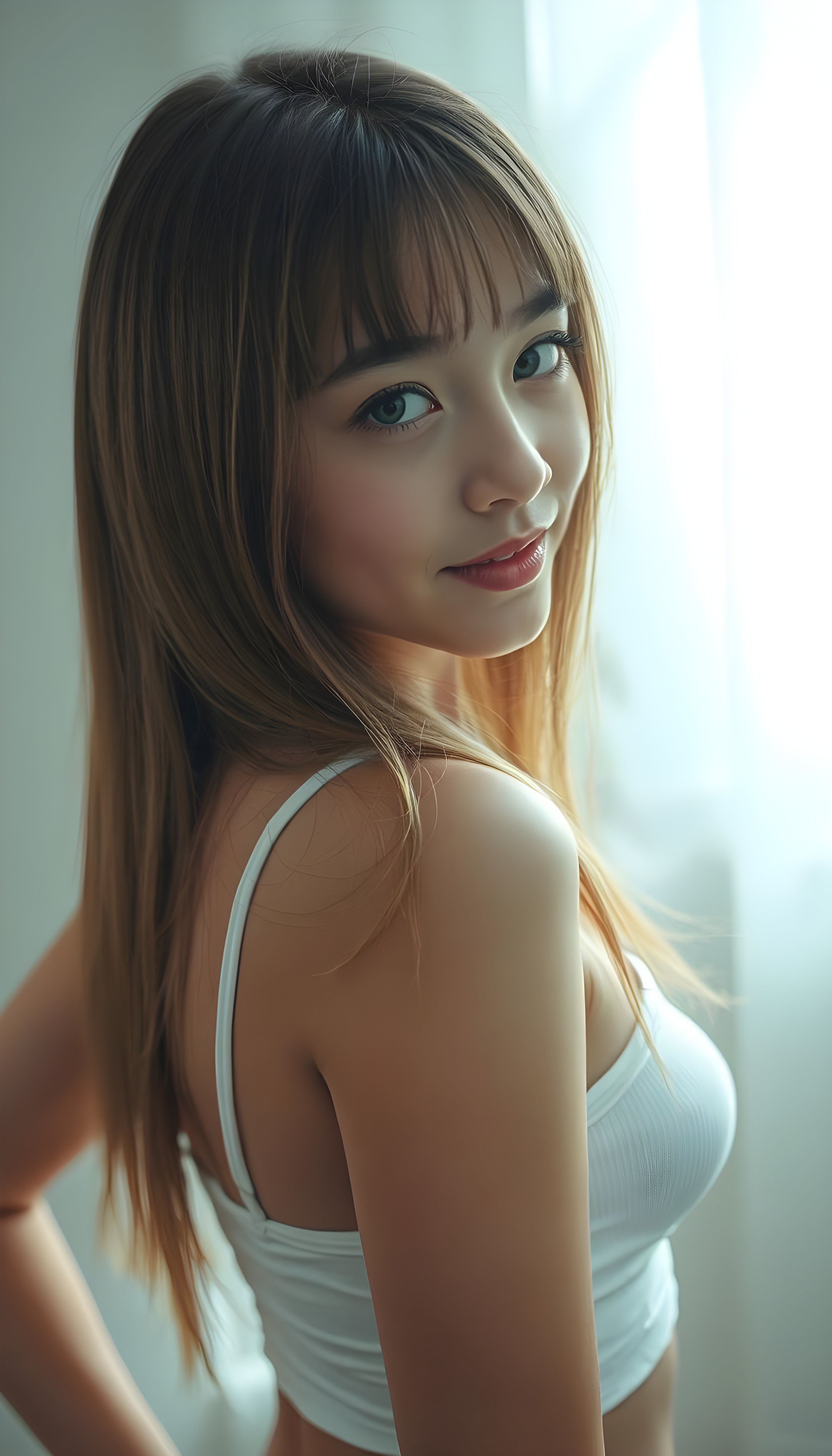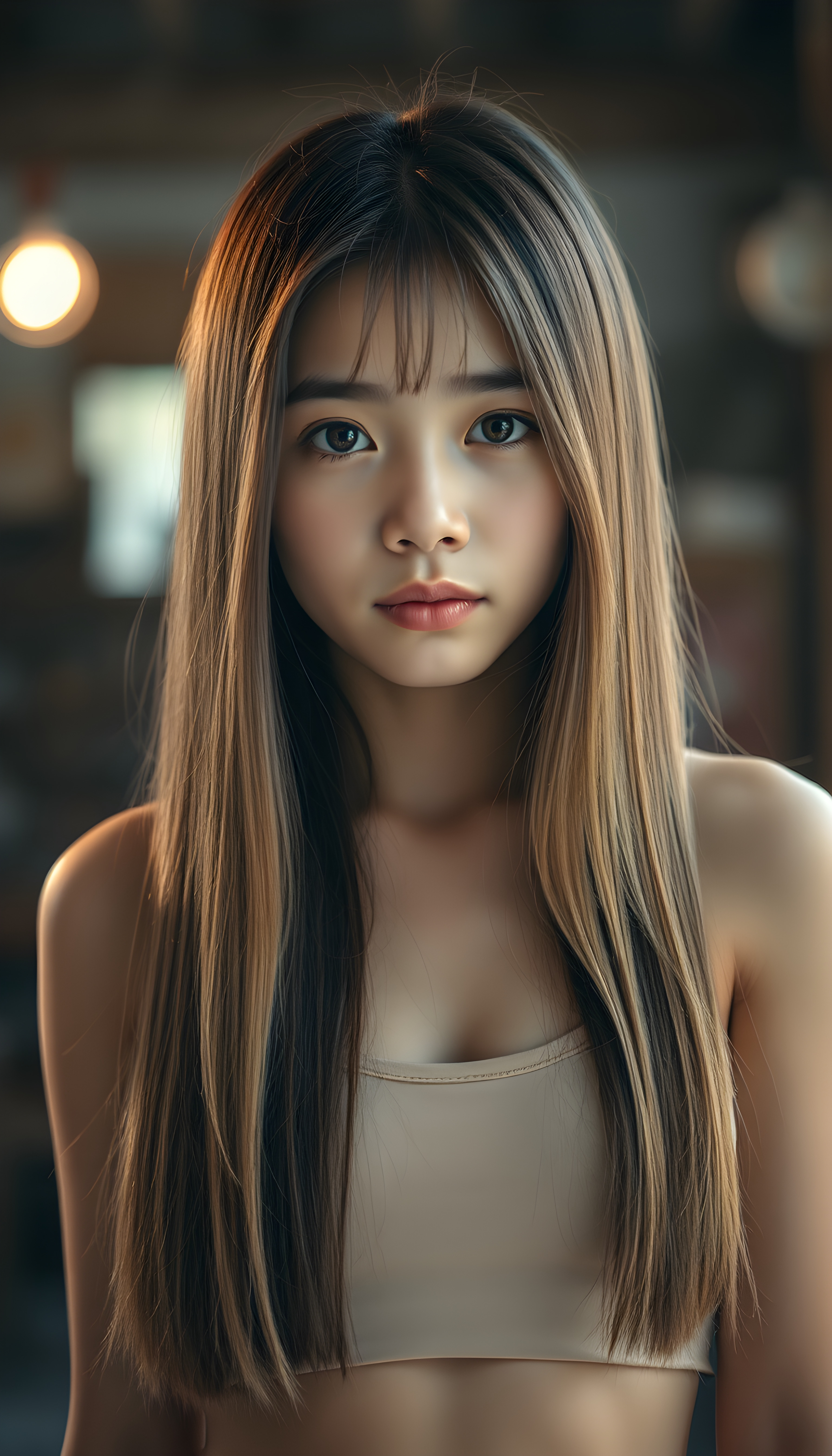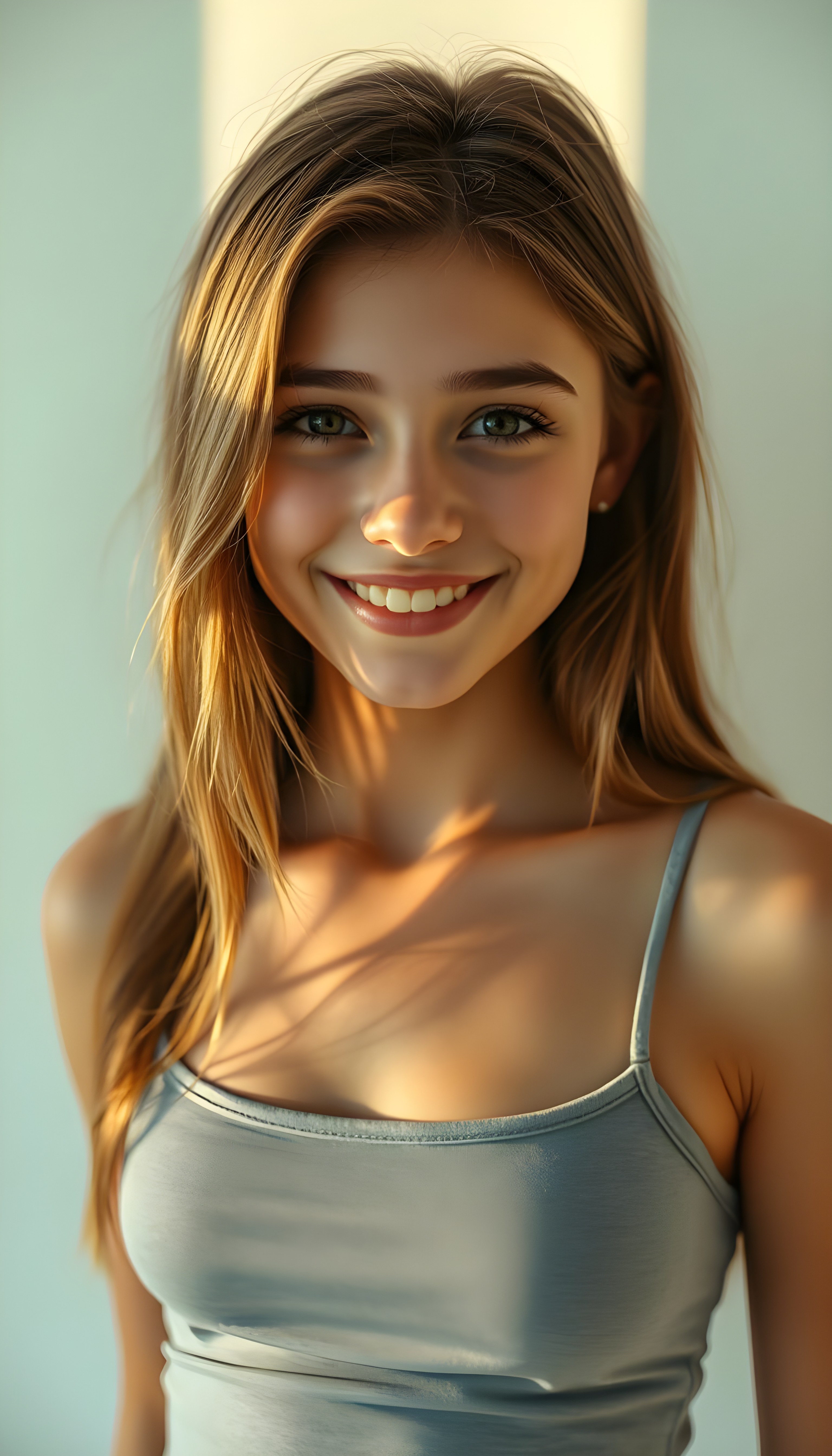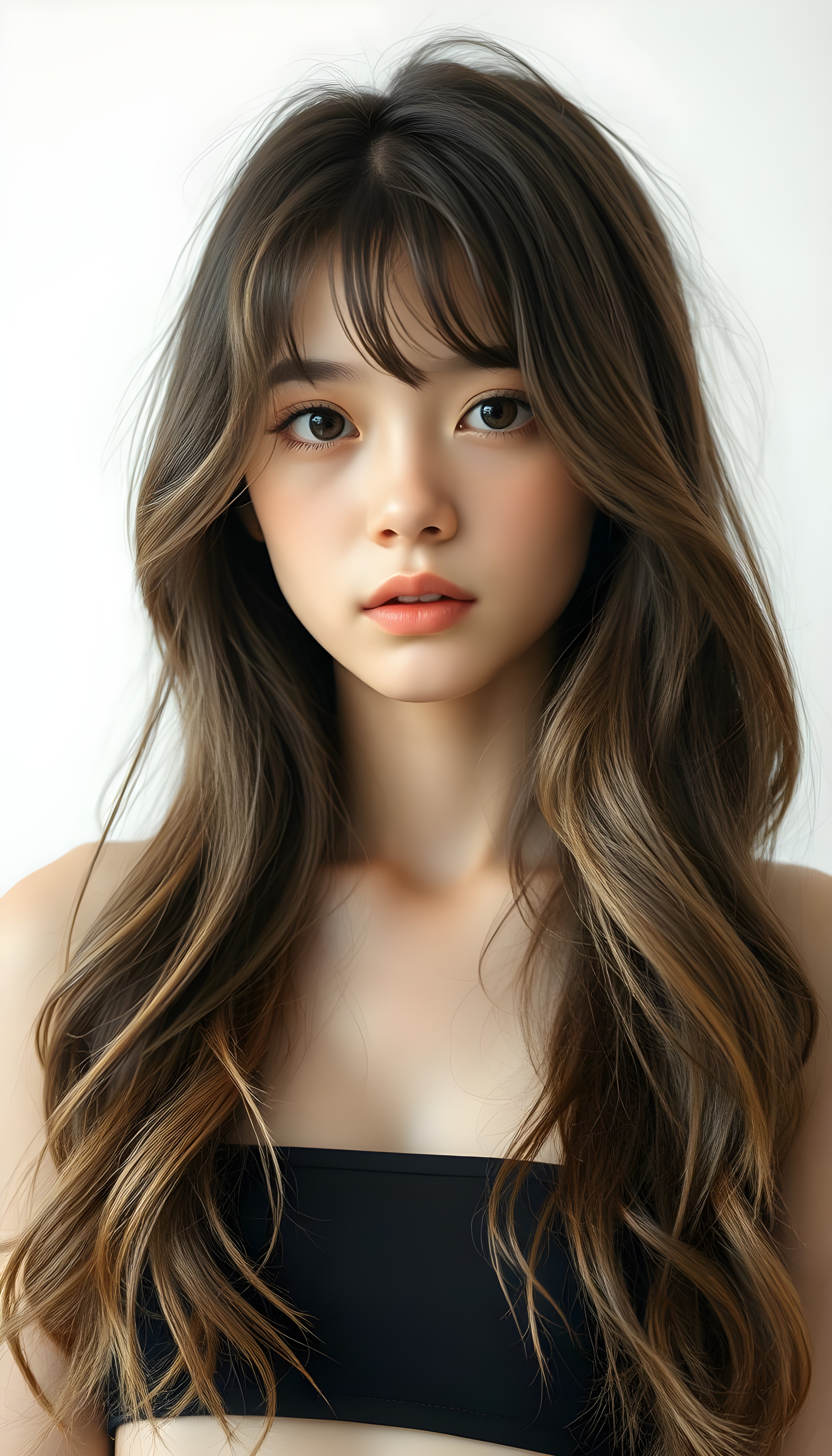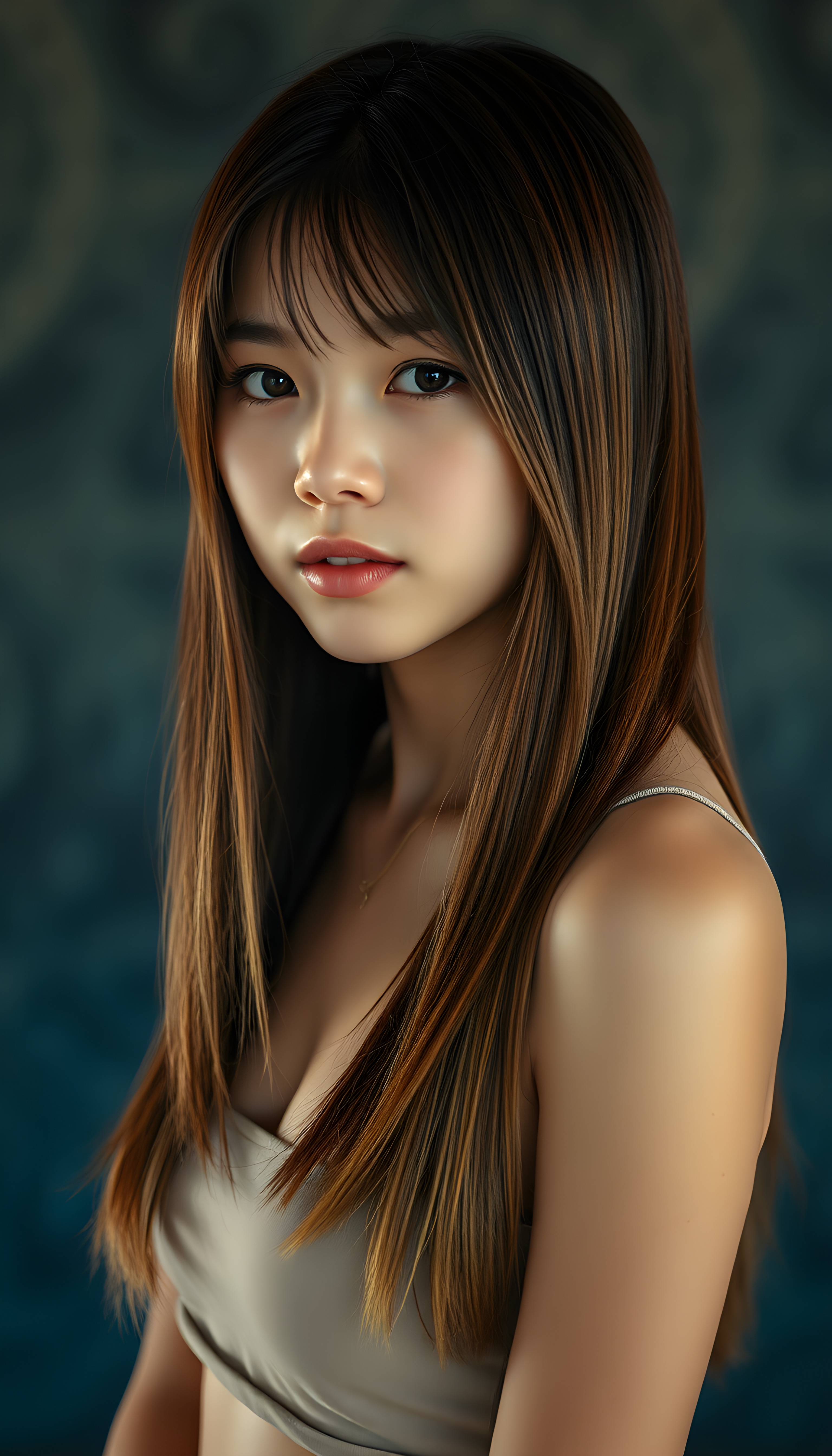 Die KI generiert makellos, neigt zur absoluten Perfektion und führt zu einer Verzerrung bezüglich Schönheitsideal. KI erstellte Bilder können (wenn man sich dies nicht bewusst ist) zu einem Realitätsverlust führen. Im folgenden Beispiel wird ein junges Mädchen erstellt, welches alle Gefahren von KI Bilder vereint. Jung, makellose Haut, langes Haar, pralle nicht allzu grosse Brüste und ein verführerischer Blick.