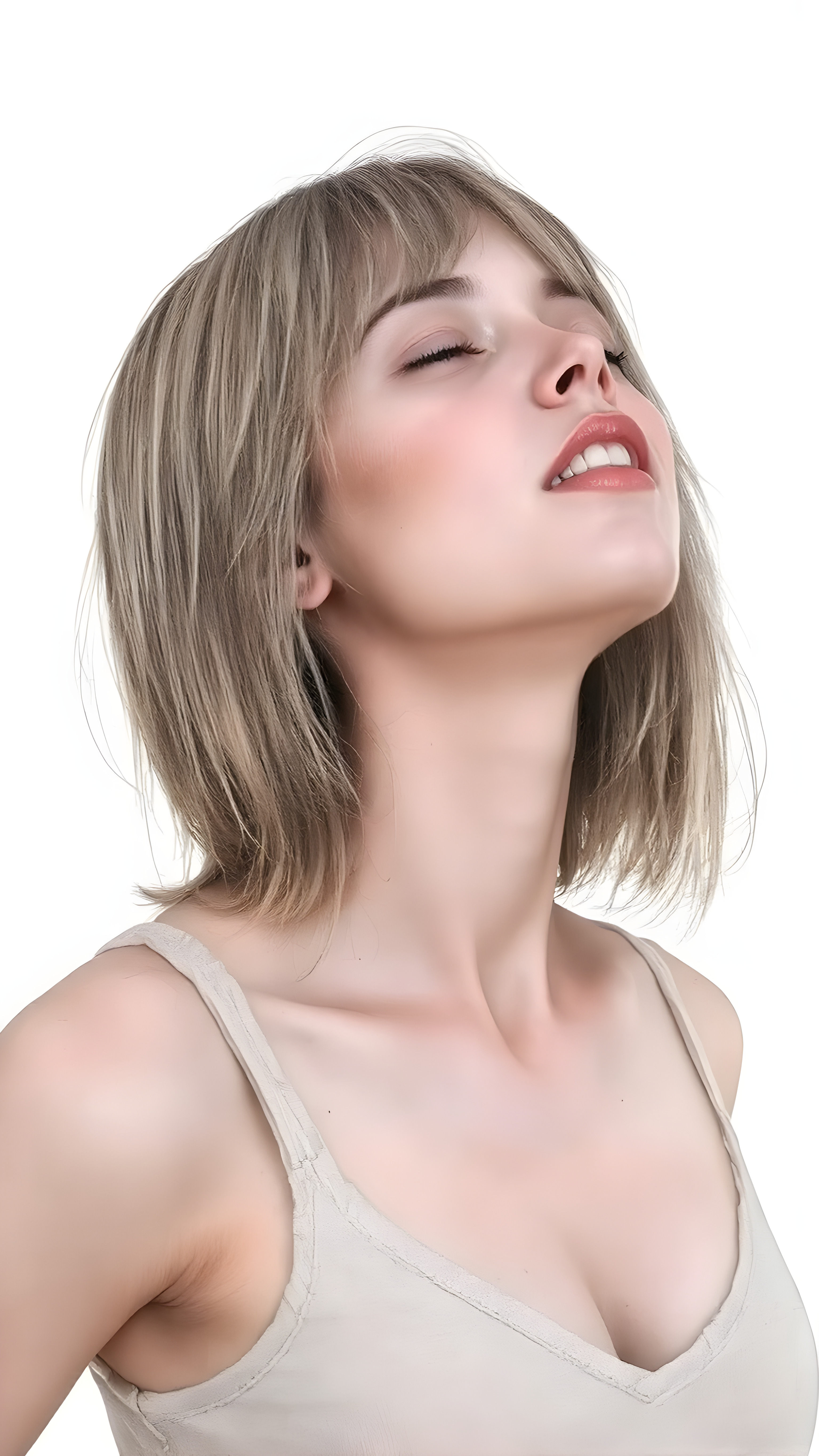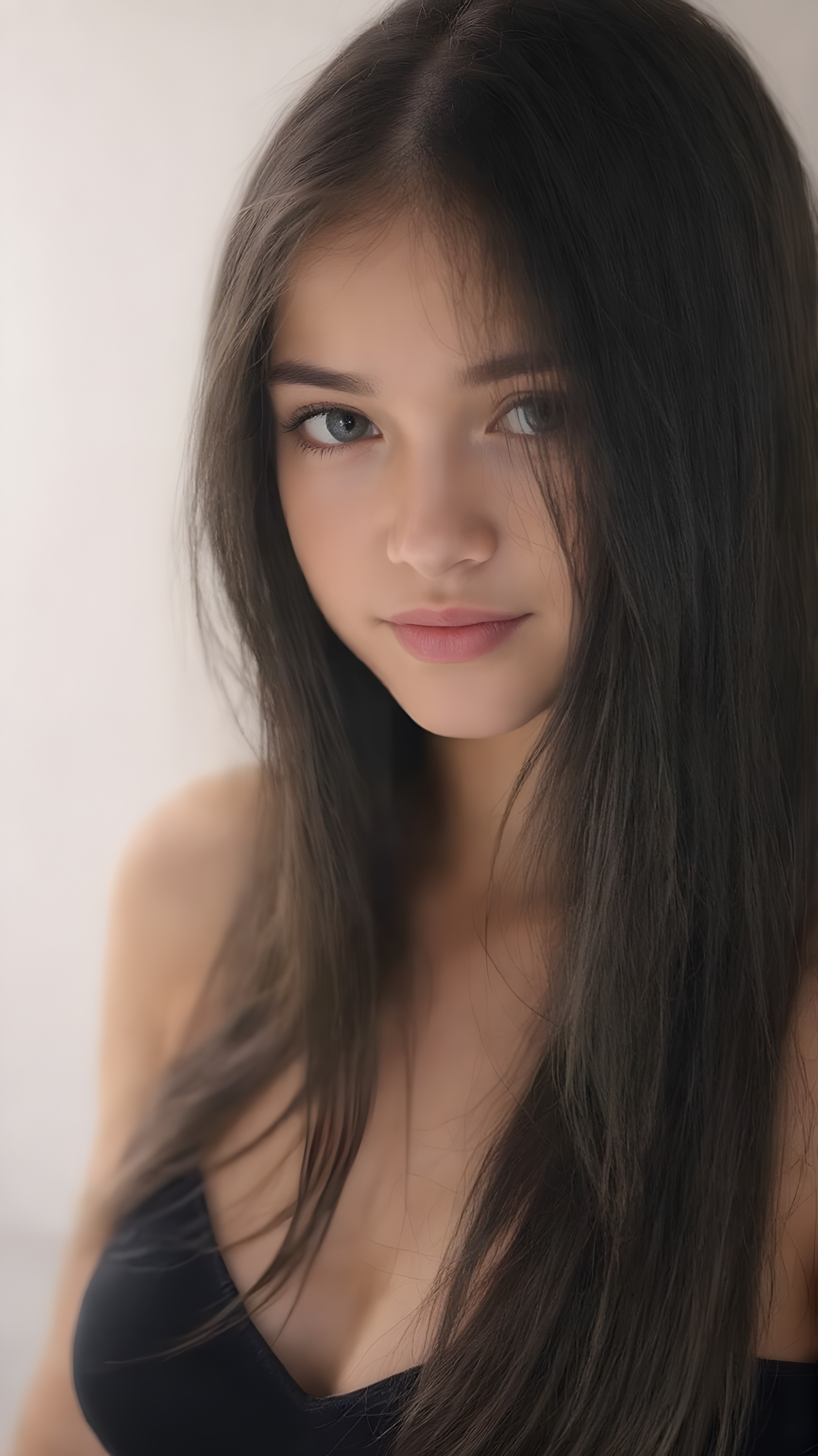 A (((realistically drawn full body shot))) of a (((cute young teen girl))) with long, straight soft blond hair, (pretty eyes), and a (delicate, almost translucent, yet perfectly detailed and perfectly proportioned figure) that defies the realm of reality, complemented by (white mini short jeans pants) and ((white shoes)), (((against a backdrop of a (softly lit grey studio setting))) with a warm, cozy, inviting glow