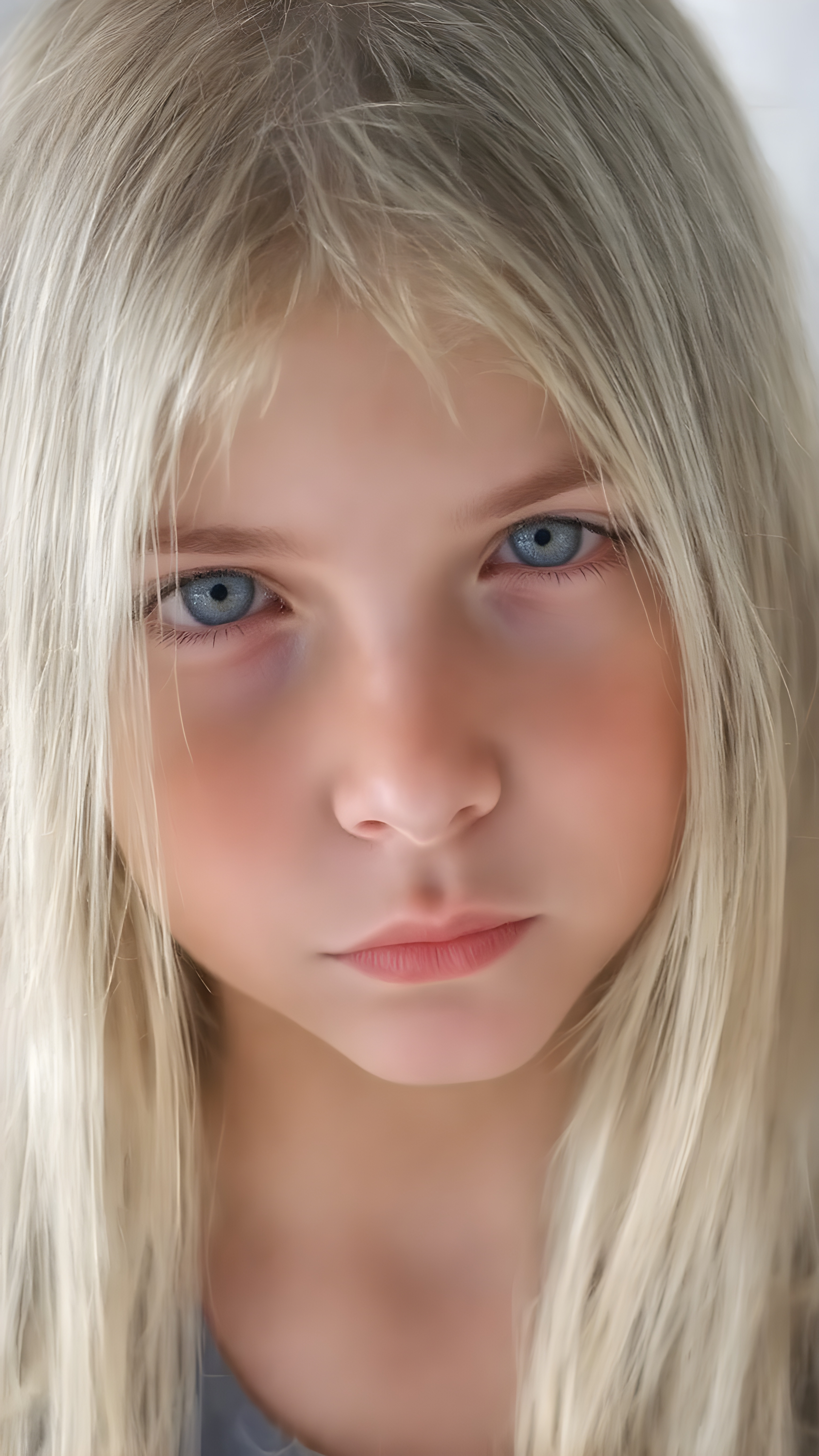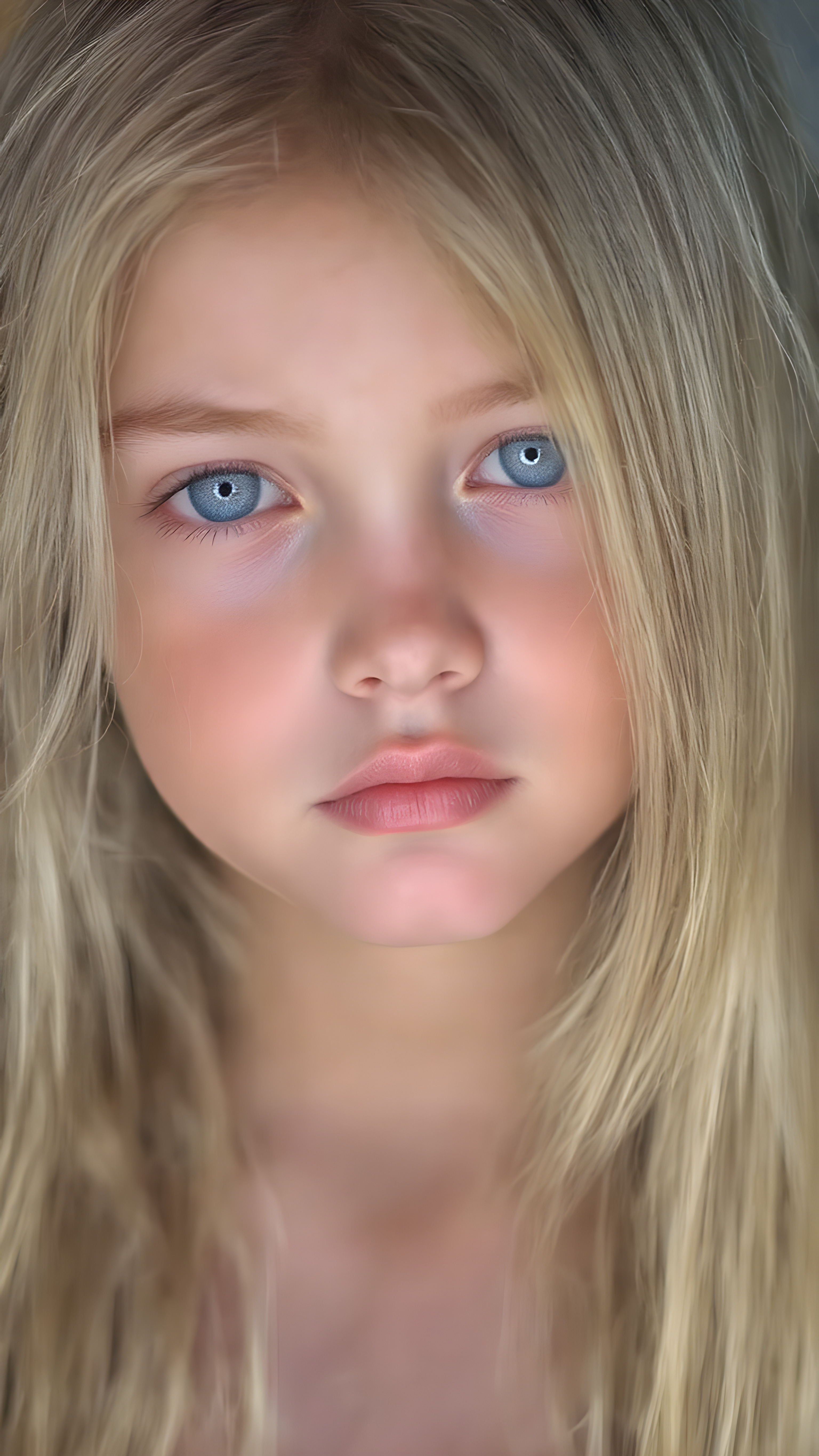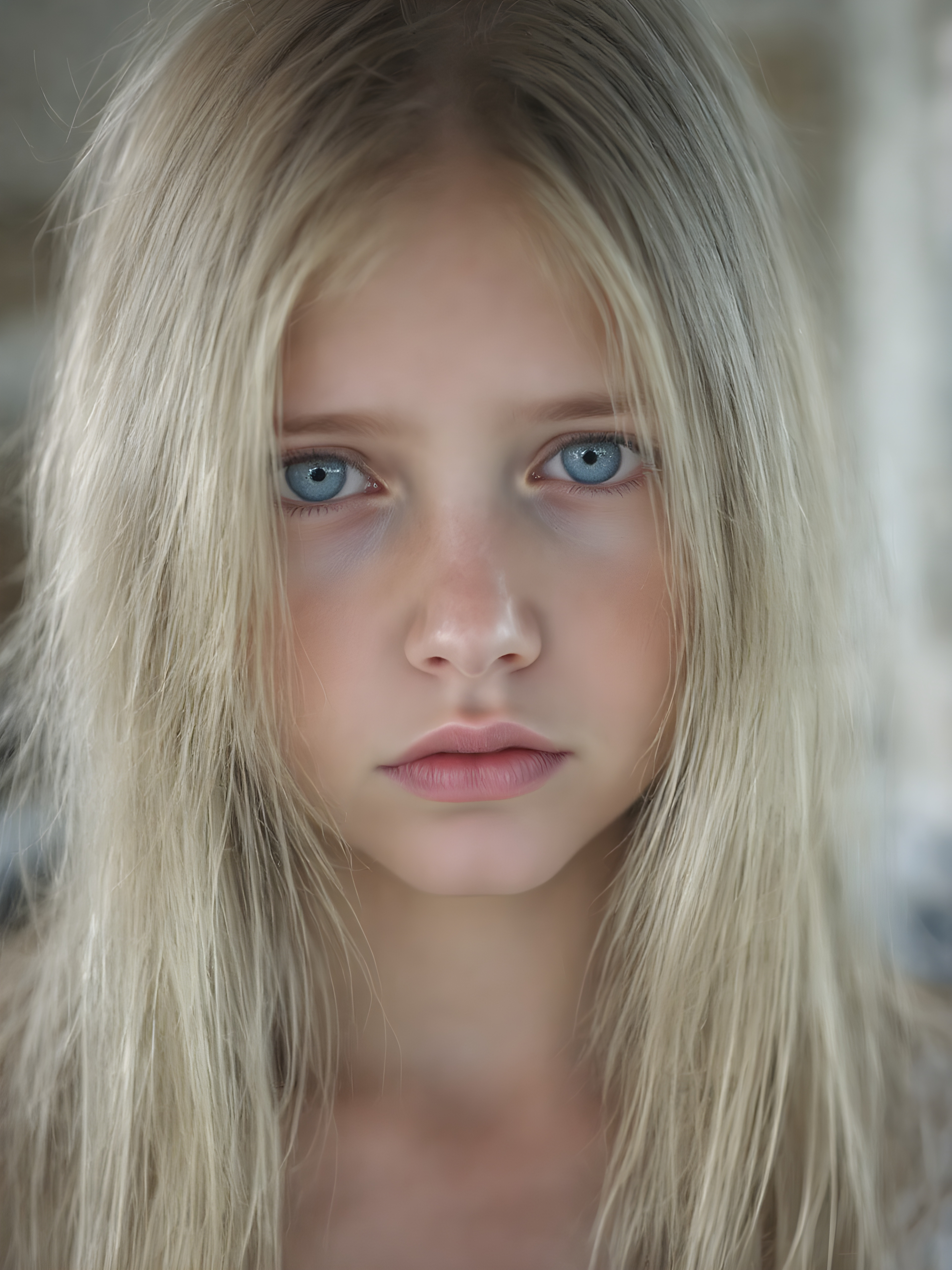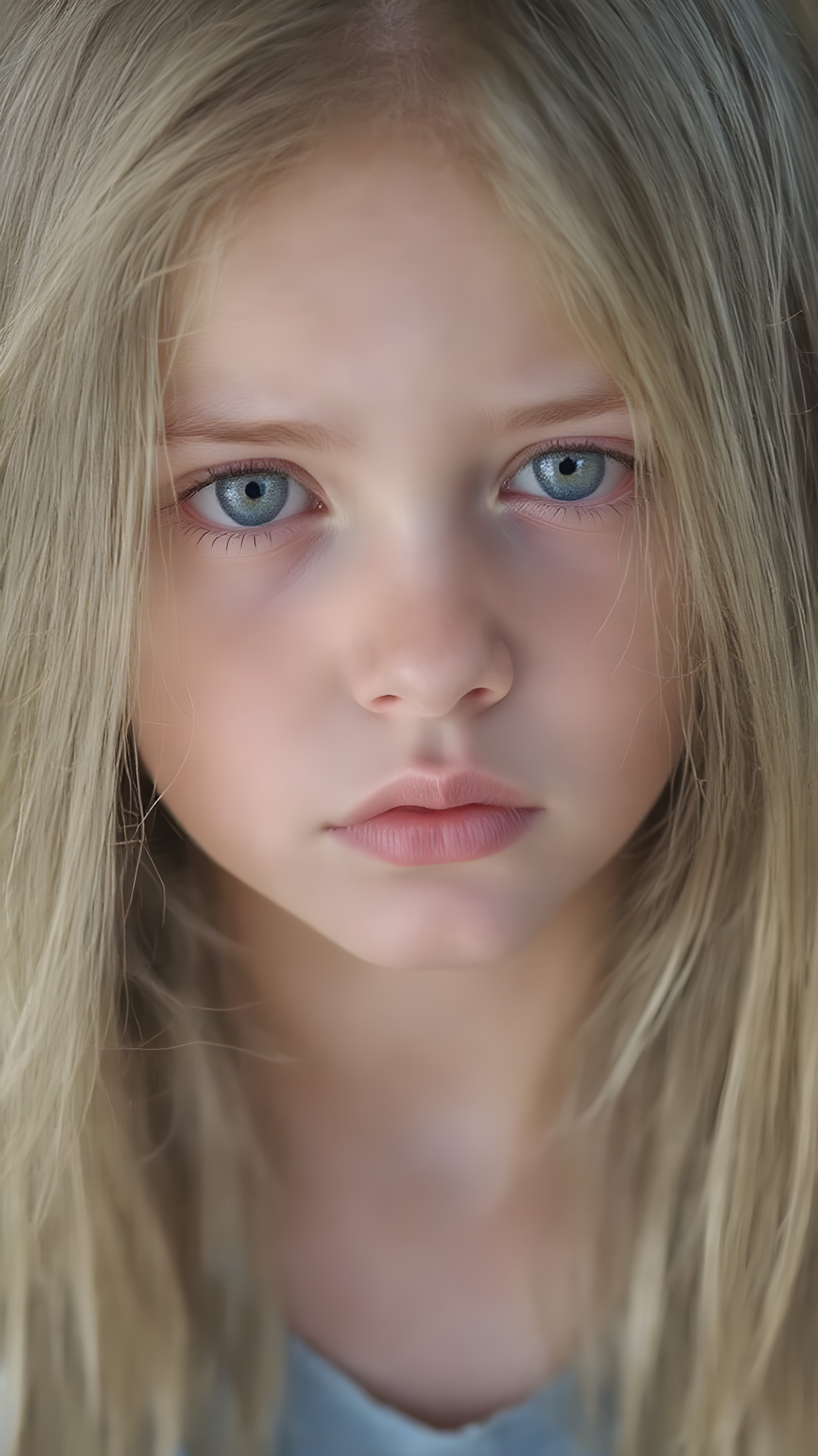 A (((very cute young girl), with (((extremely long, straight, thick, untucked natural white golden blonde hair))), which flows down to her hips, and (bright natural blue eyes), that reflect a soft glow, framing a (full, round face) with (full, defined lips) that are painted in (soft, natural tones) and (barely parted) to convey a sense of fatigue. Her expression is one of (extreme tiredness) and her hair is (pretty much untucked) with (pretty natural amber eyes) that convey a sense of (natural beauty). A ((perfectly detailed and evenly distributed 16K resolution, with intricate details and a warm, inviting tone, that gives off a (soft, natural glow))) completes this image, which exudes an (extreme feeling of tiredness) that is both inviting and (hyper realistic).