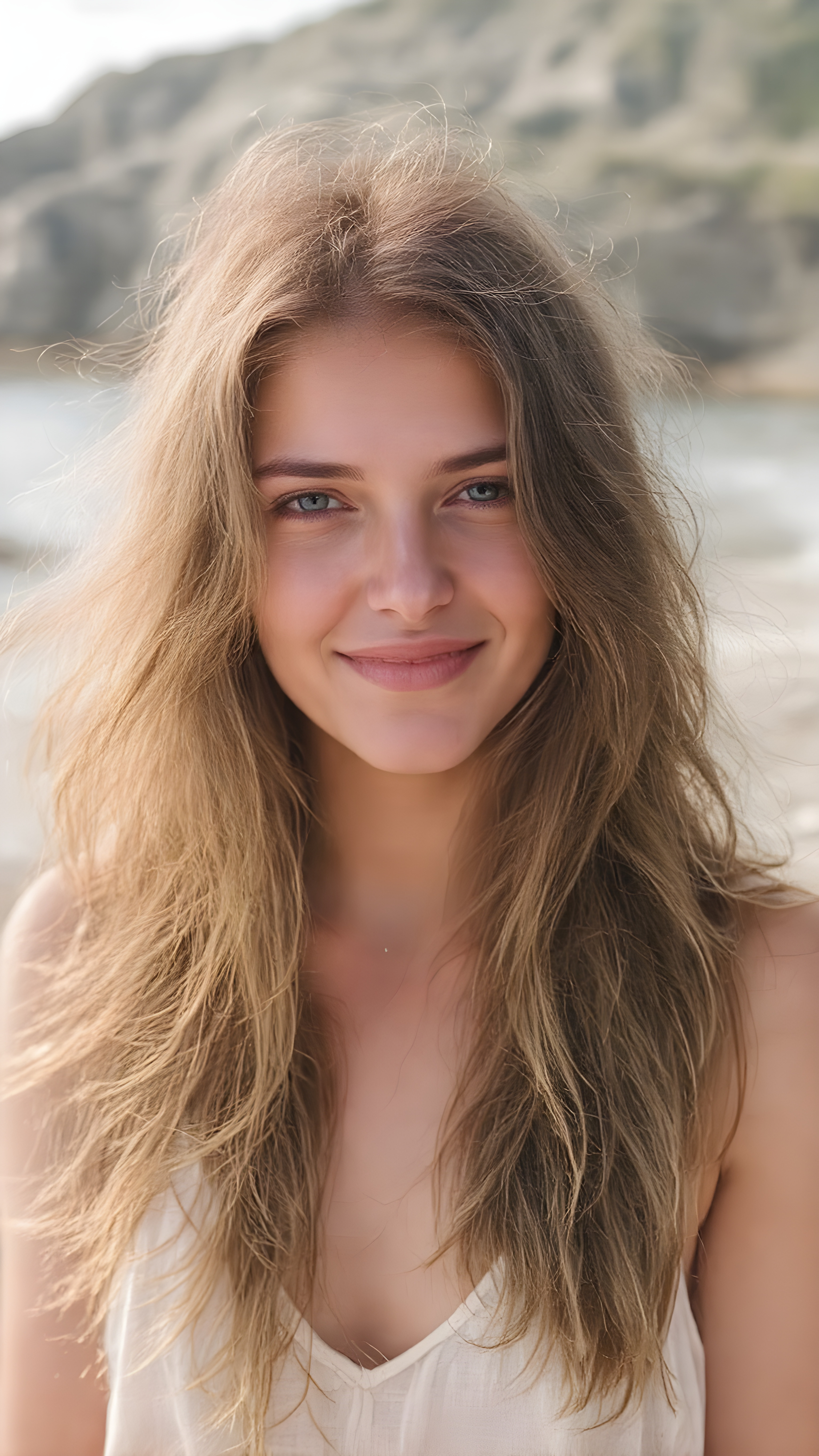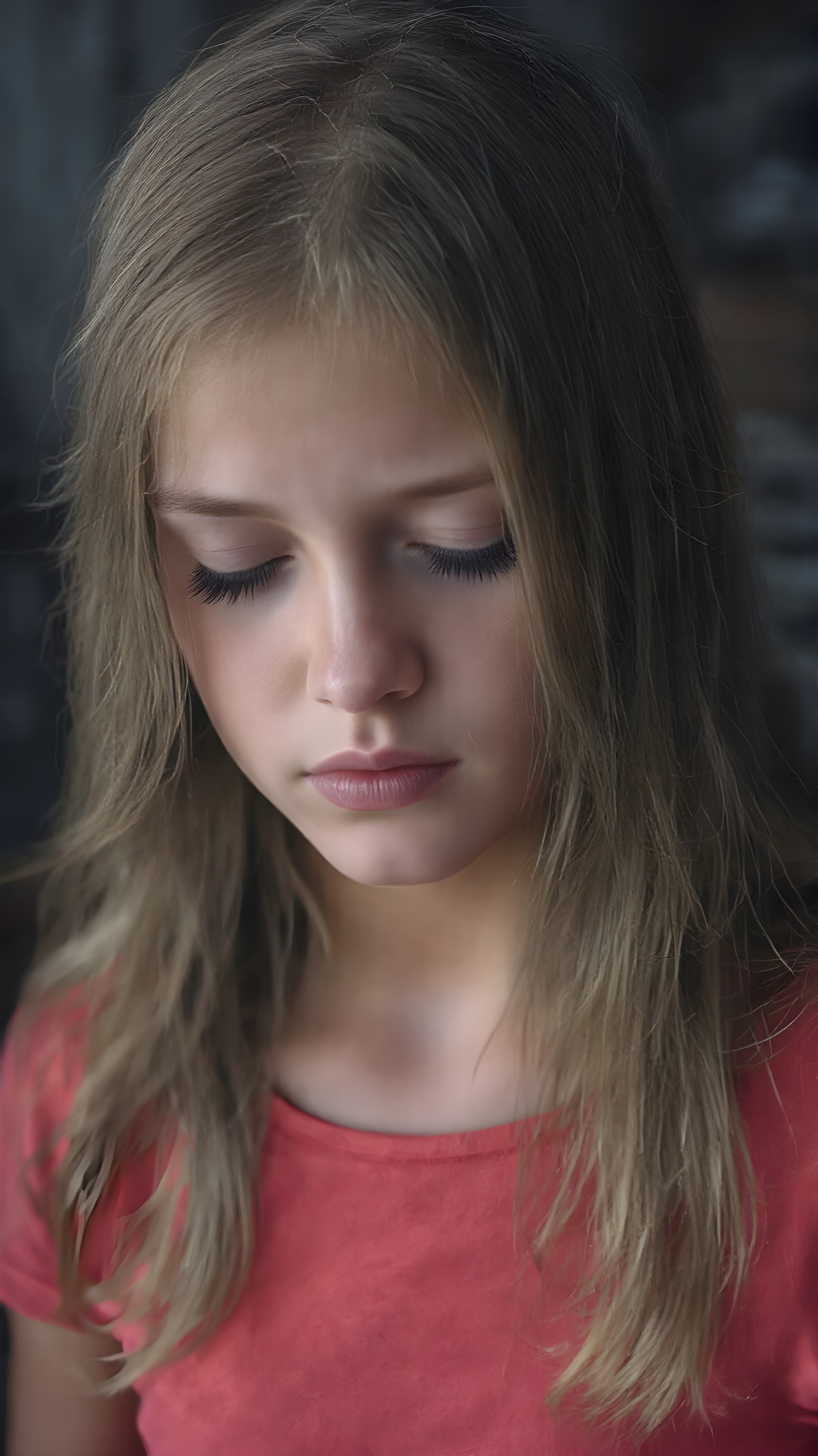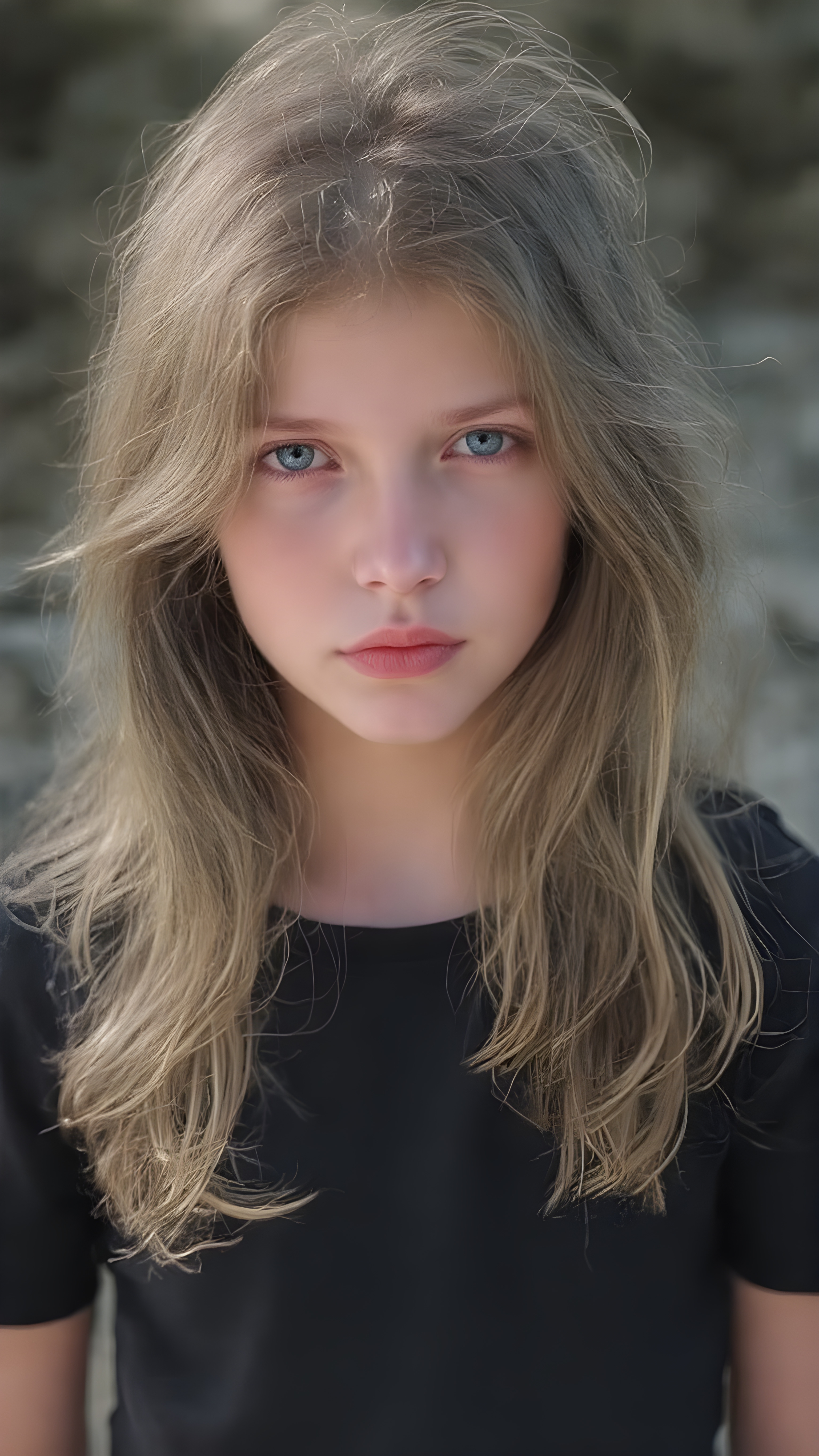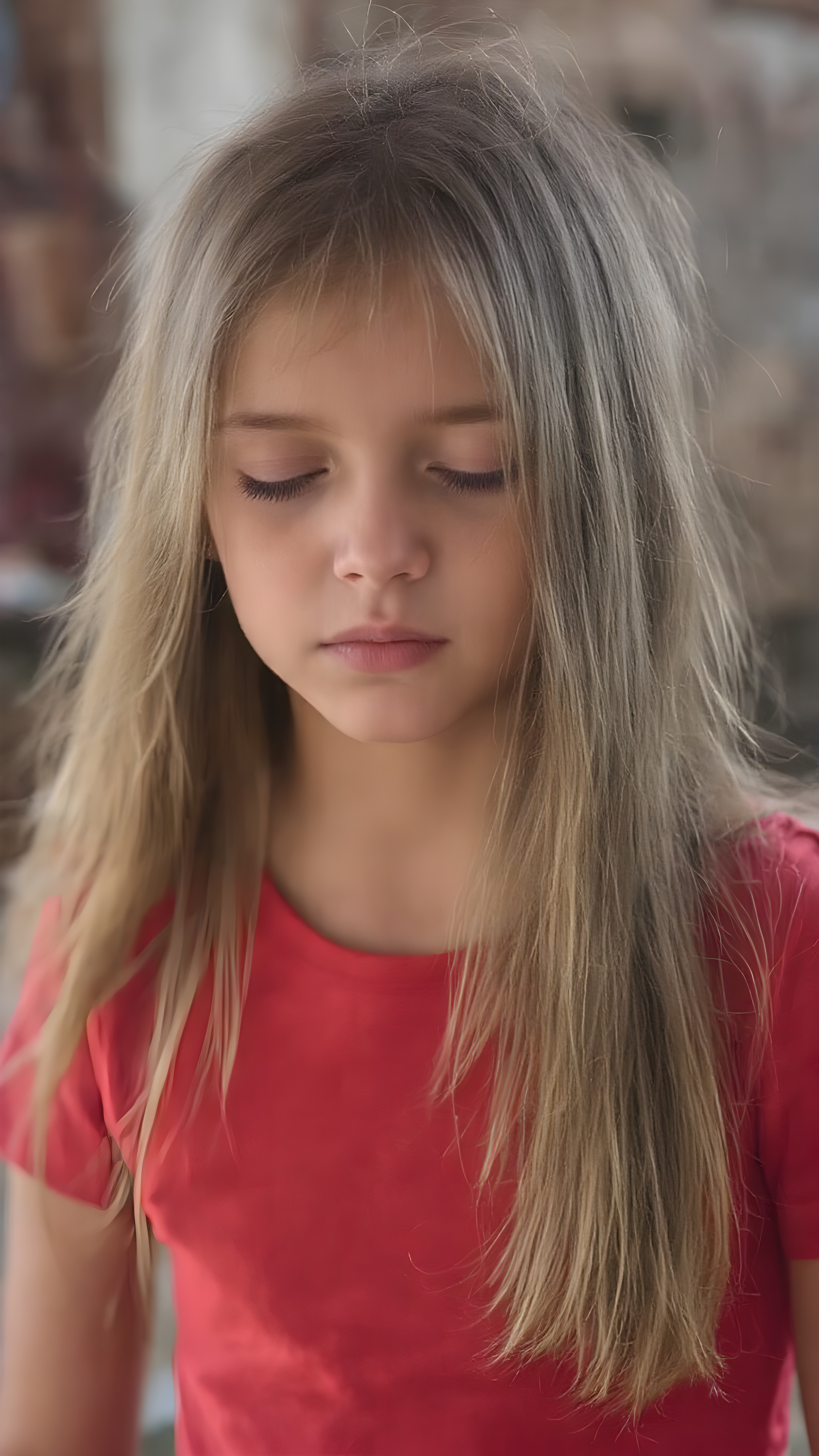 A (((very cute young girl), with (((extremely long, straight, thick, untucked natural white golden blonde hair))), which flows down to her hips, and (bright natural blue eyes), that reflect a soft glow, framing a (full, round face) with (full, defined lips) that are painted in (soft, natural tones) and (barely parted) to convey a sense of fatigue. Her expression is one of (extreme tiredness) and her hair is (pretty much untucked) with (pretty natural amber eyes) that convey a sense of (natural beauty). A ((perfectly detailed and evenly distributed 16K resolution, with intricate details and a warm, inviting tone, that gives off a (soft, natural glow))) completes this image, which exudes an (extreme feeling of tiredness) that is both inviting and (hyper realistic).