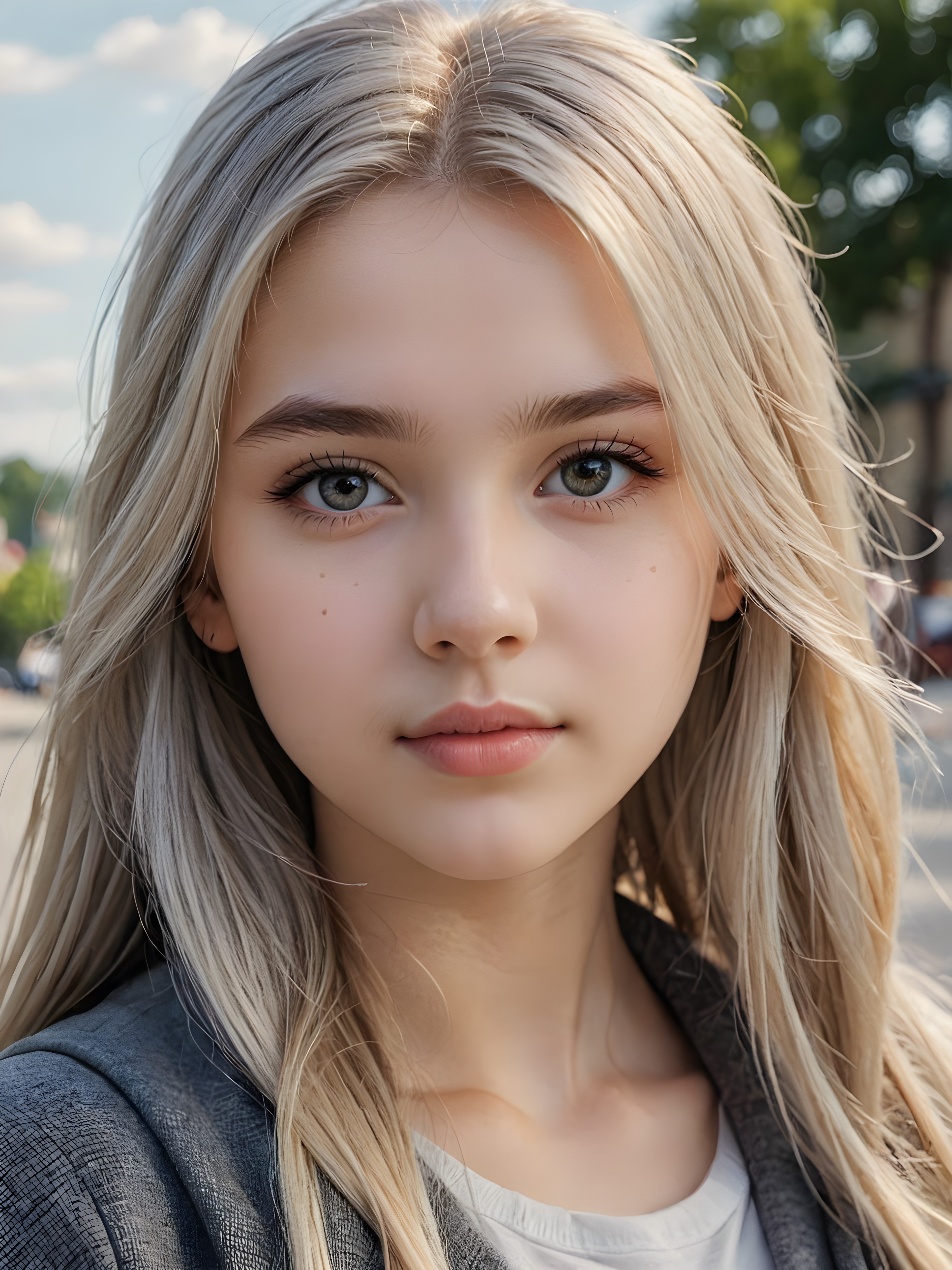 ((portrait)), detailed pencil drawing, silvery-skinned (((young teen girl))), long straight platinum hair