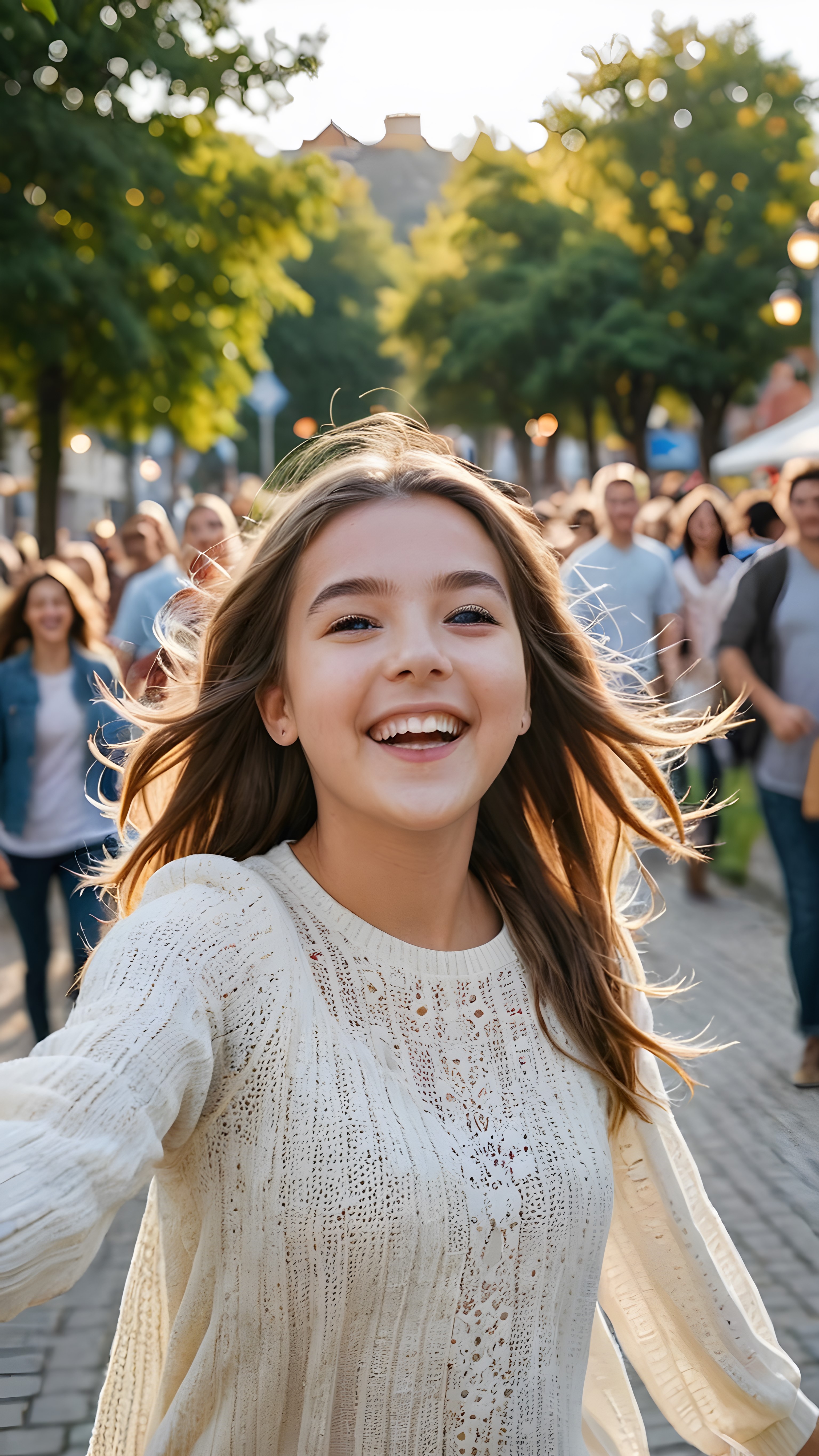 a (((young, attractive teen girl))) in a (((carefree, happy expression))), surrounded by an air of exuberance and vivacity
