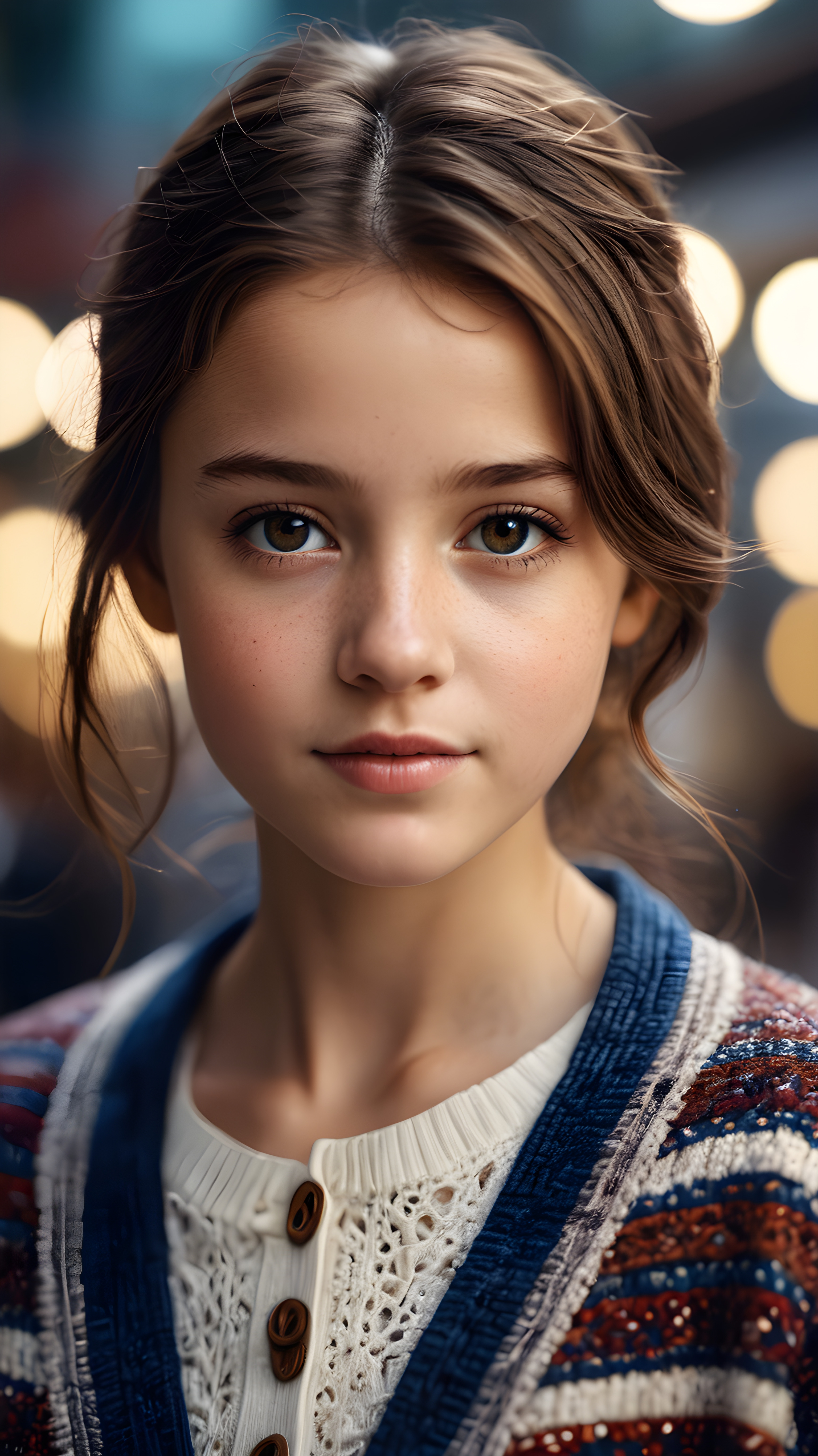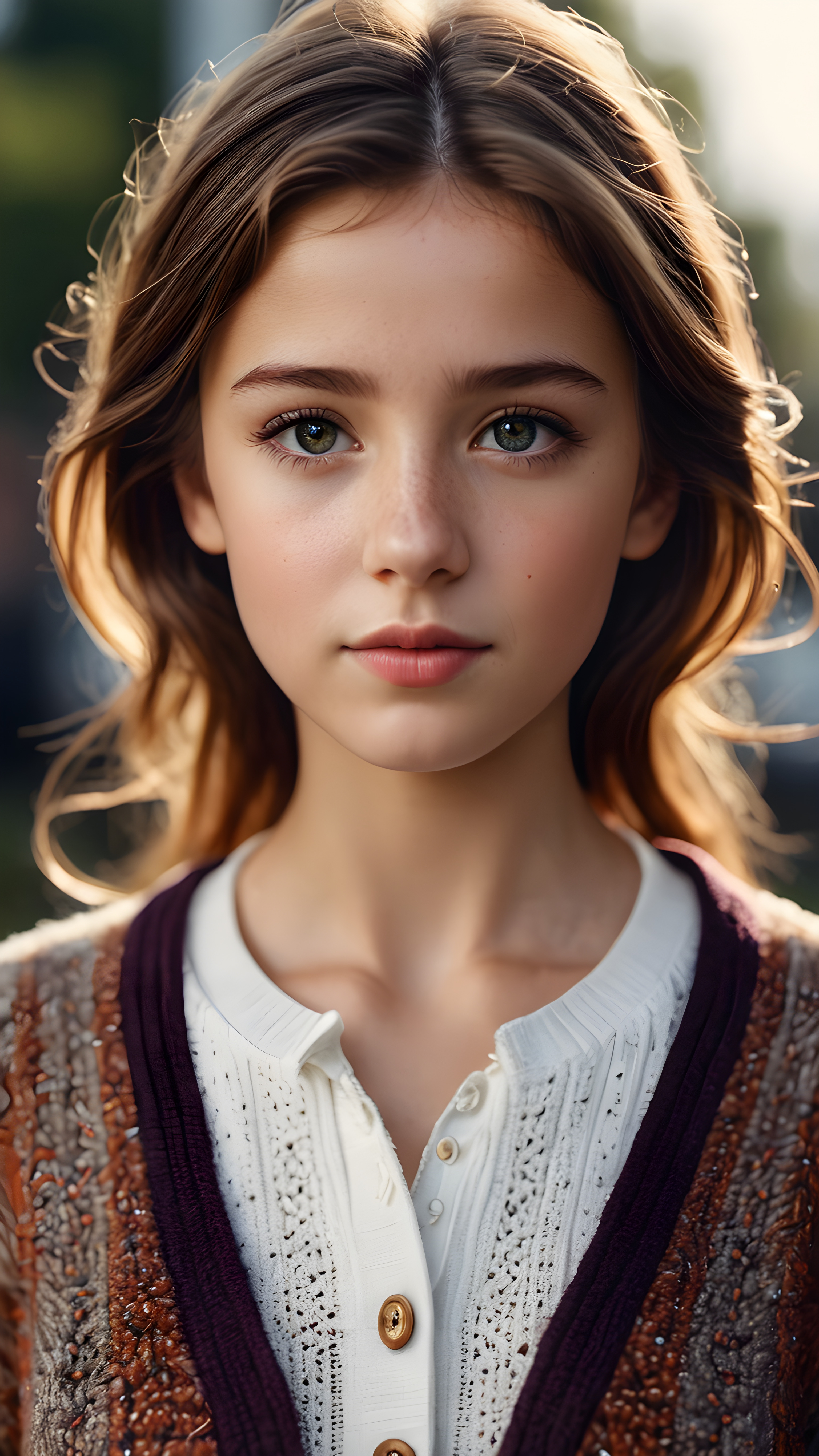 ((stunning)) ((gorgeous)) ((detailed, realistic portrait)) a young girl wearing a cardigan.
