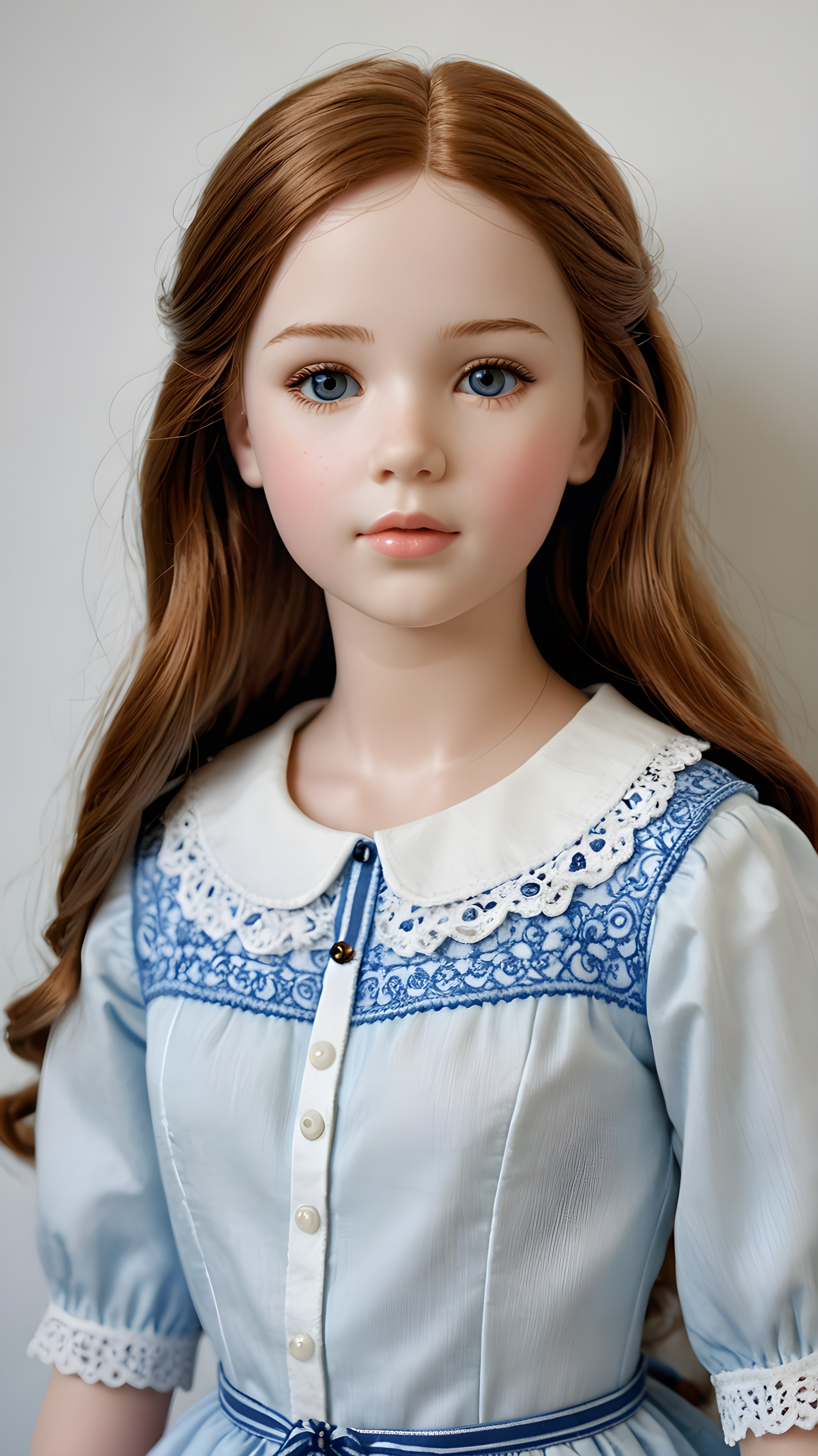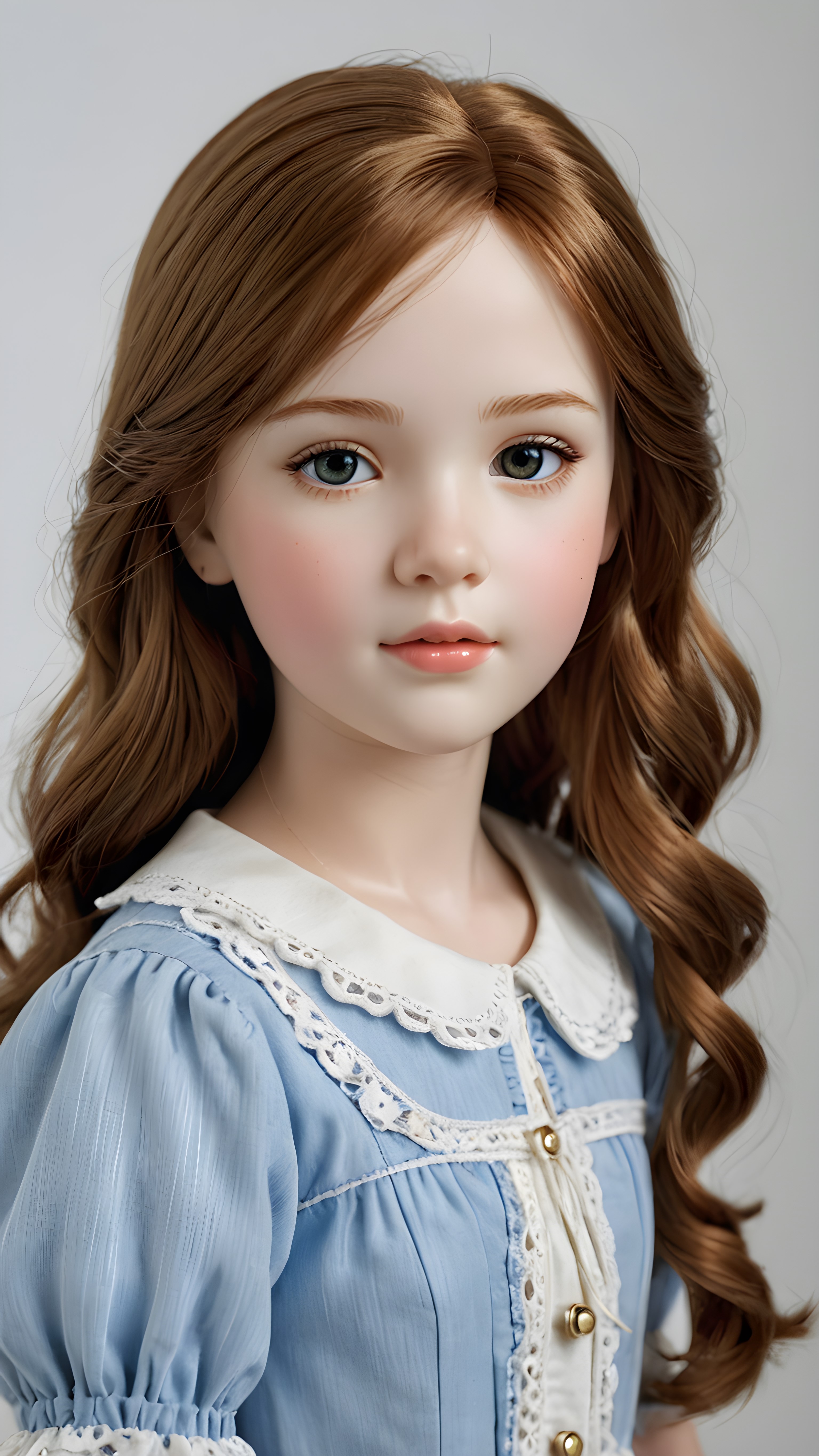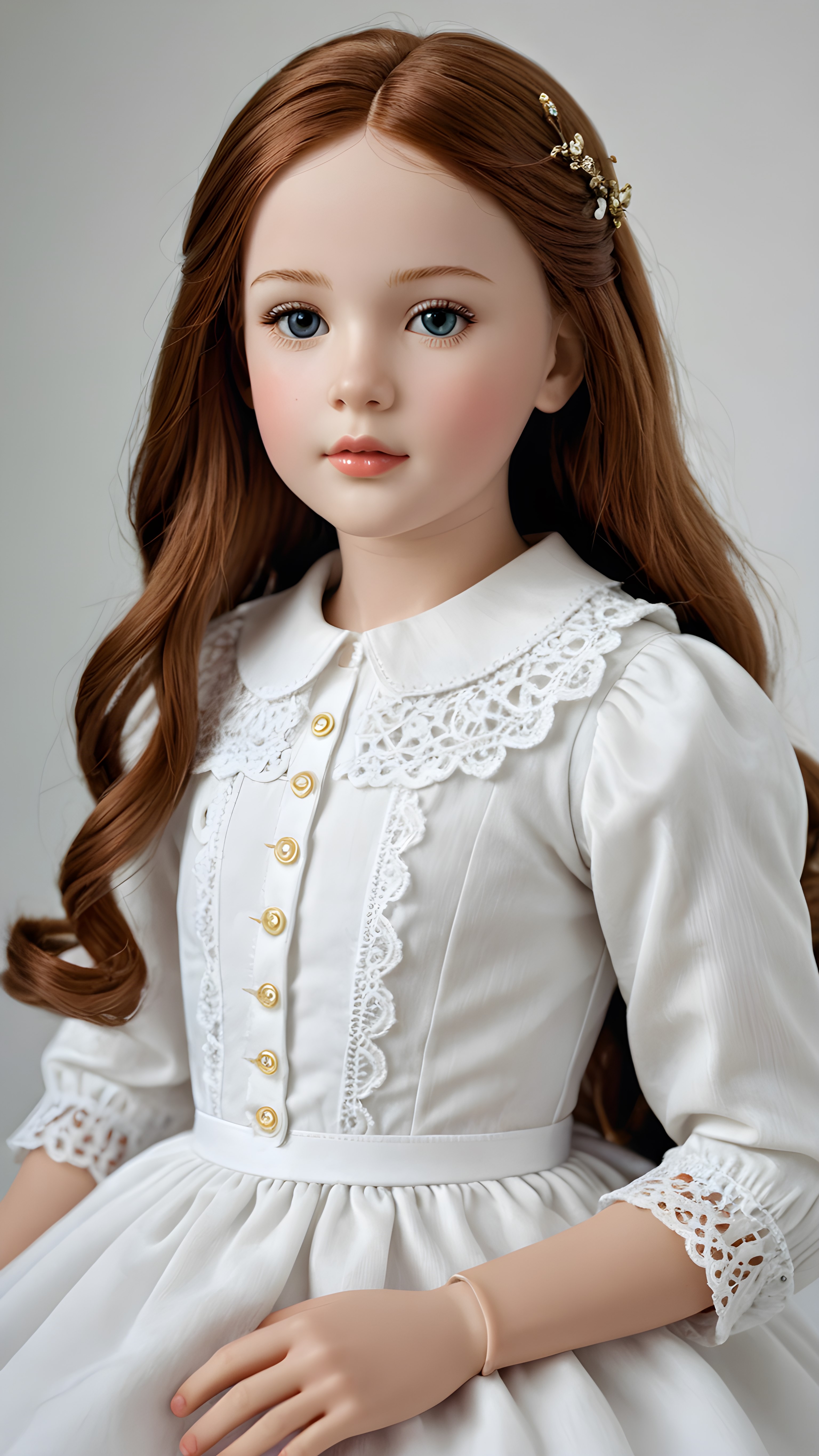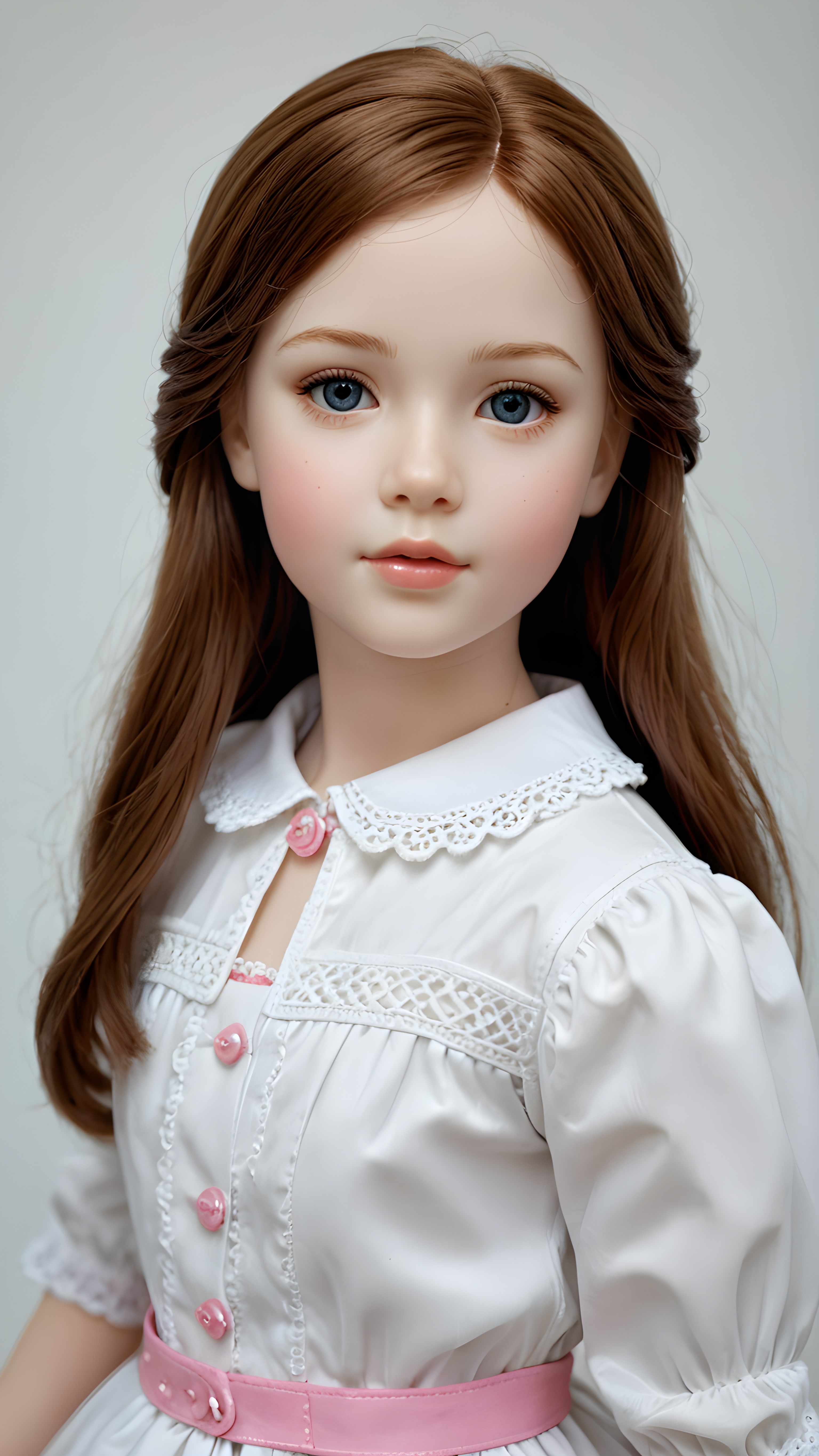a porcelain doll, young girl, ((realistic photo)), 3D