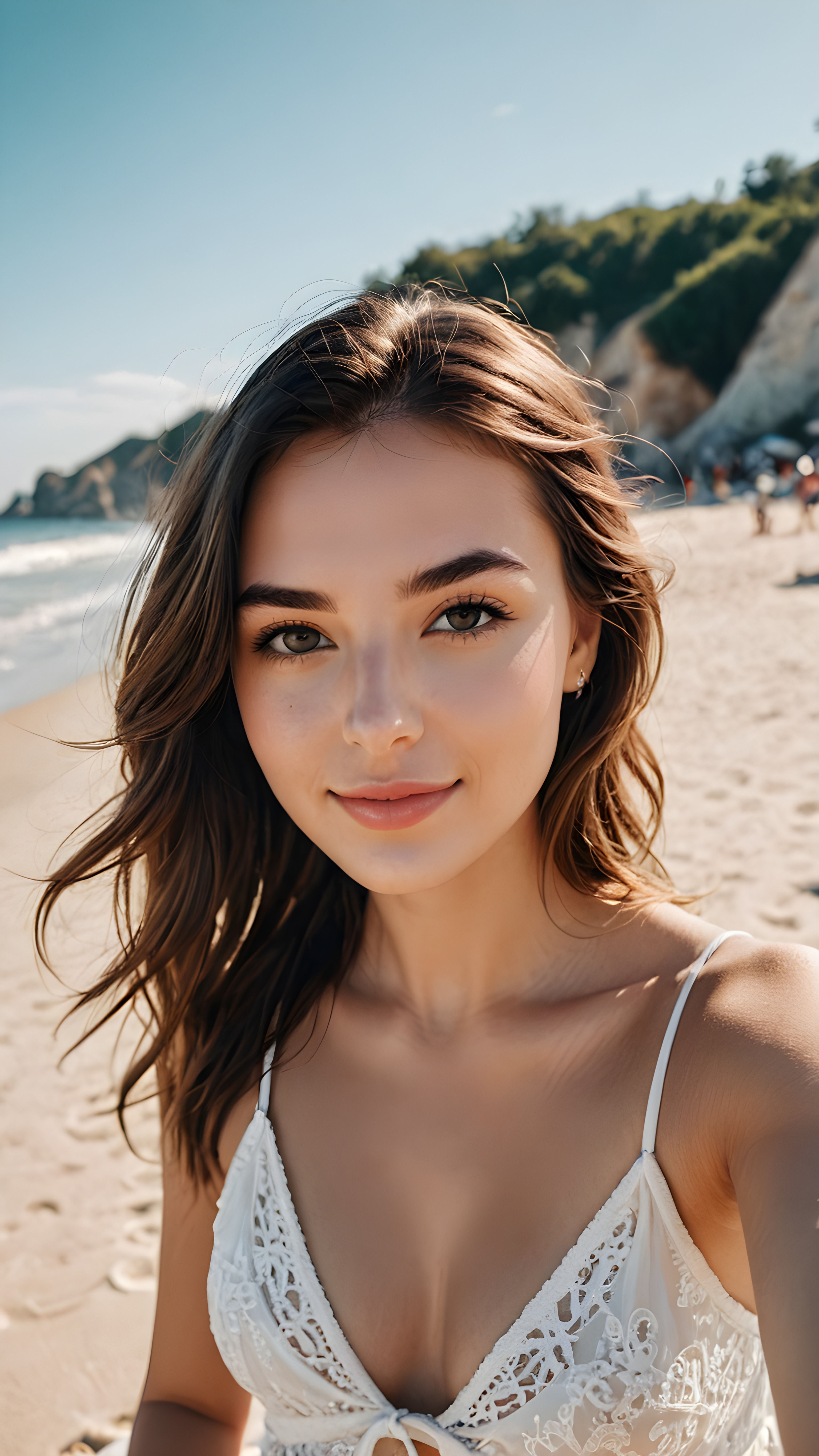 a girlie, ((stunning)) ((gorgeous)) ((cute)) ((perfect selfie on the beach))