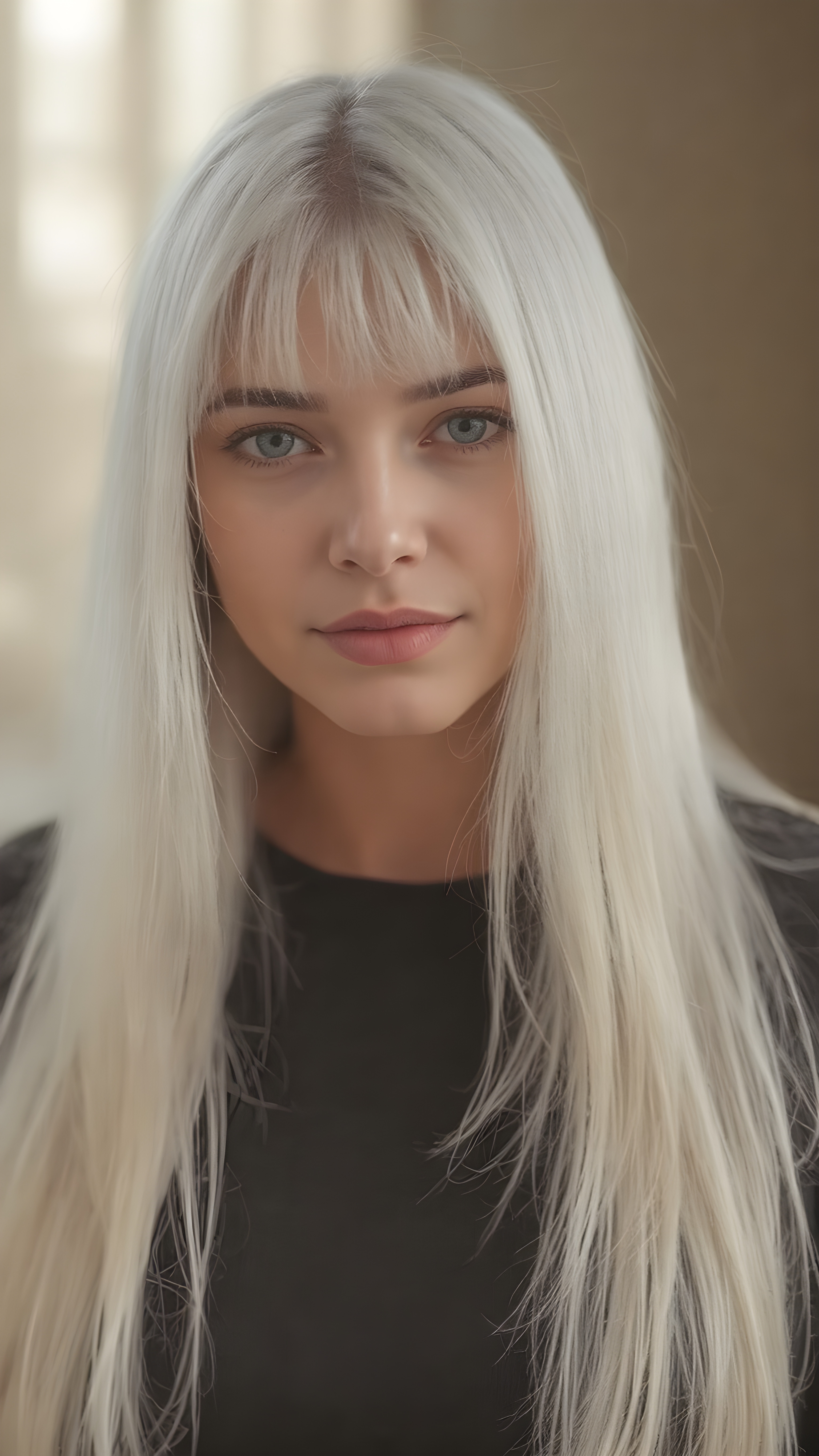 a young and gorgeous girl: perfecting the art of proportionality, with each body part meticulously crafted to its fullest extent, visualize a (((perfect straight very long jet blond hair, with no fringes or bangs, cut to frame her face in a subtle yet sophisticated detail))) that complements the natural beauty of her features. The scene is advanced with intricate details like a ((fine wool cropped top)), ((insisting on the perfect symmetry and balance of its intricate details)), set against a (softly detailed, high-resolution backdrop) that showcases the advanced lighting technique of RTX on for a stunningly detailed, 8K cinematic portrait