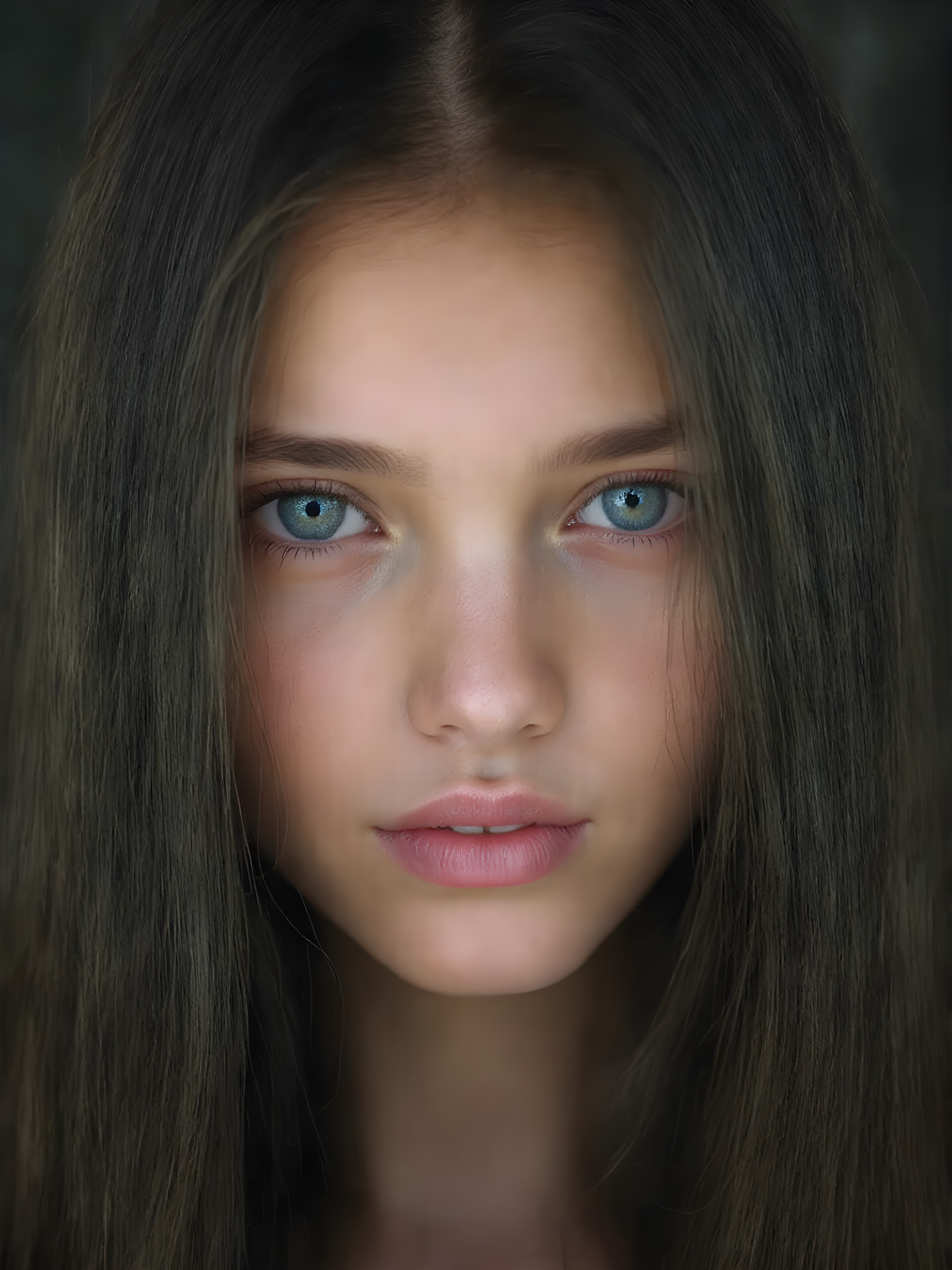 a face portrait shot from a (((stunningly beautiful young girl))) with an exceptionally long, thick, straight obsidian black hair intricately styled in sleek, voluminous locks that frame her face perfectly, her eyes are the most gorgeous in the world, with a perfect oval shape and cutting-edge technology like irises that match the color of her eyes and enhance their beauty. Her face exudes ultra realism, with fine lines that convey a sense of luxurious opulence. She’s captured in a front view, showcasing her full figure elegantly, with a warm smile that gives her a cute, inviting expression, ((open mouth and white teeth))