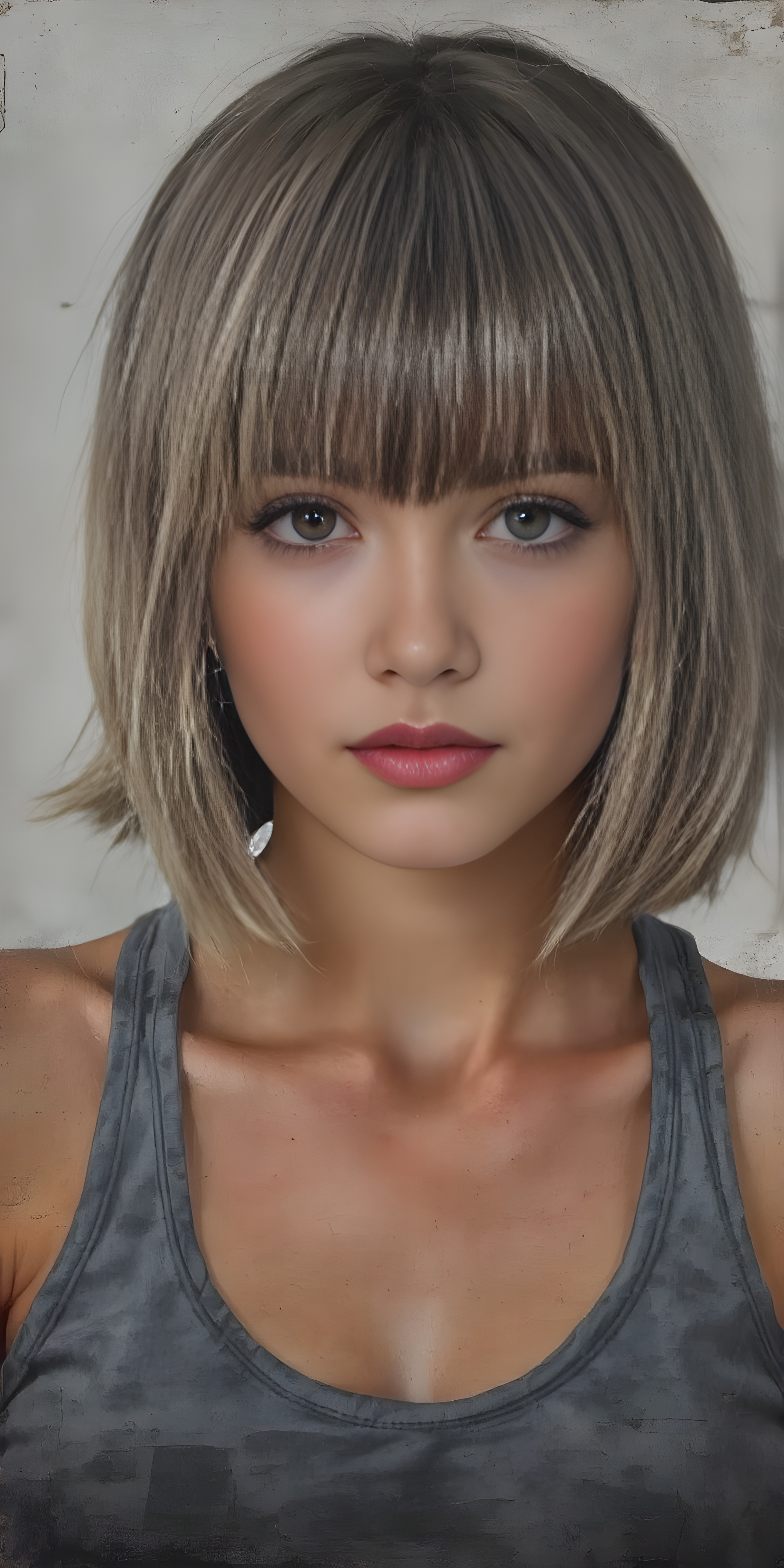 a teen girl, perfect fit body, sport top, bob cut, straight hair