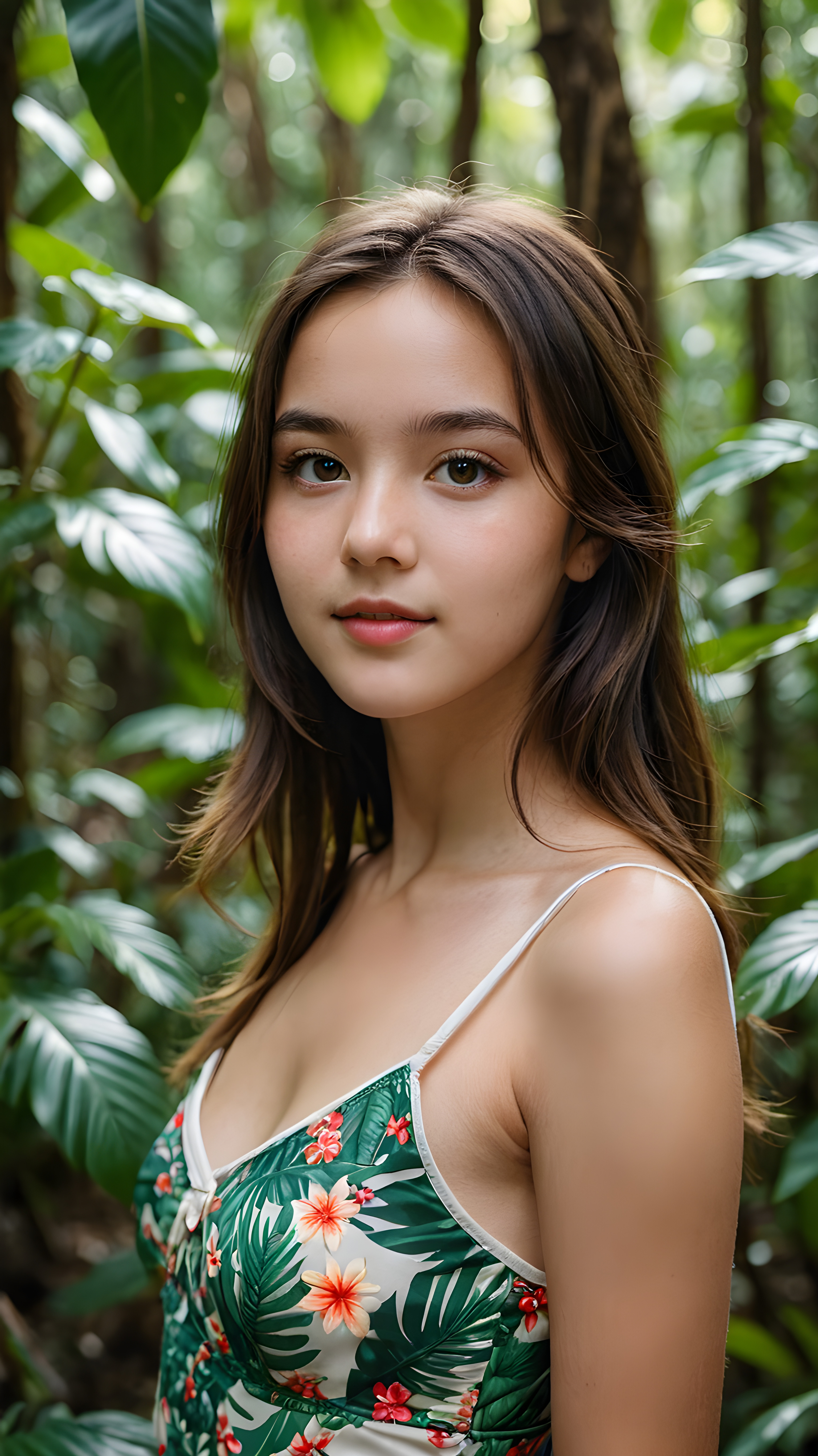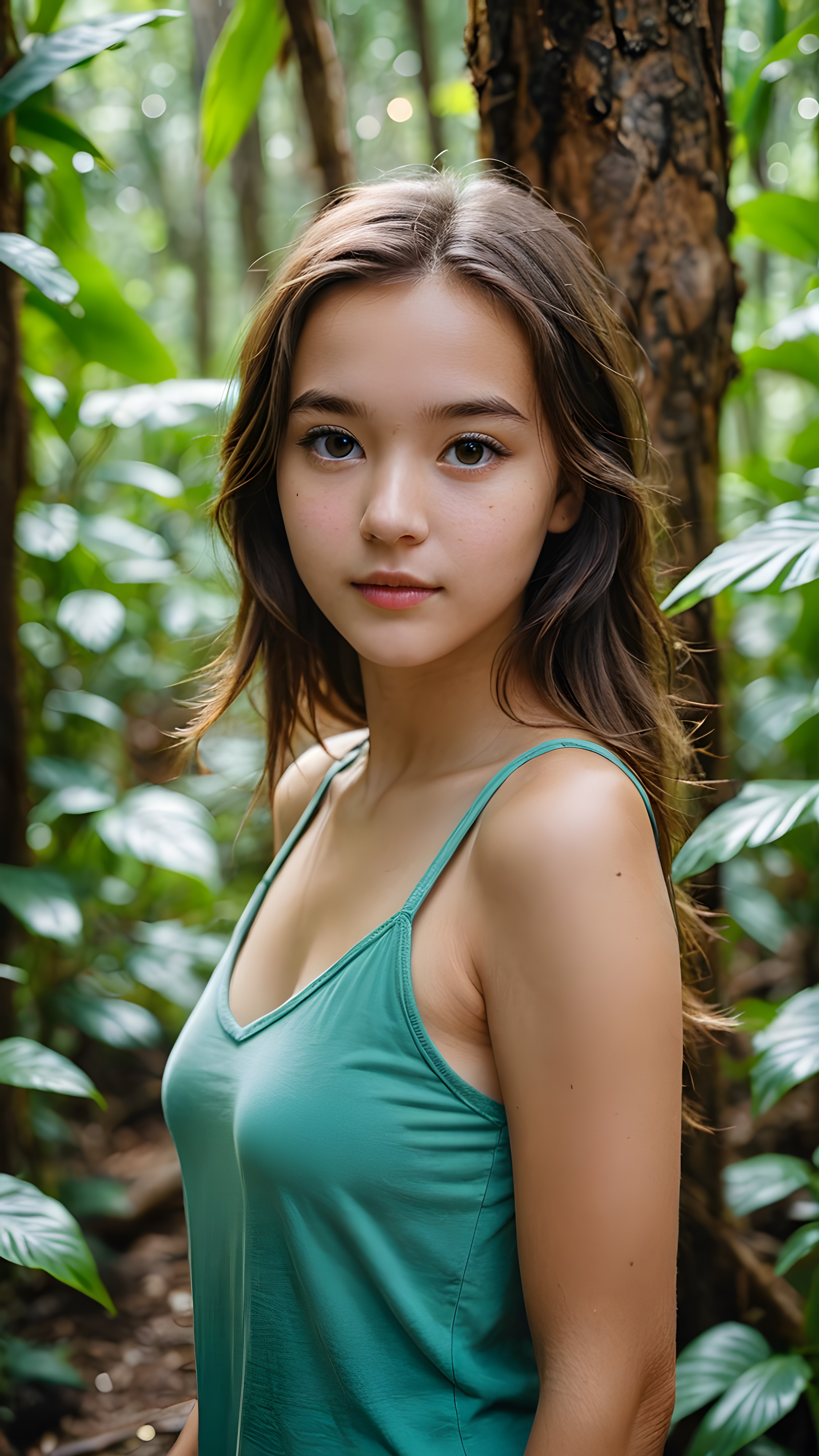 a gorgeous and stunning teen girl in the jungle