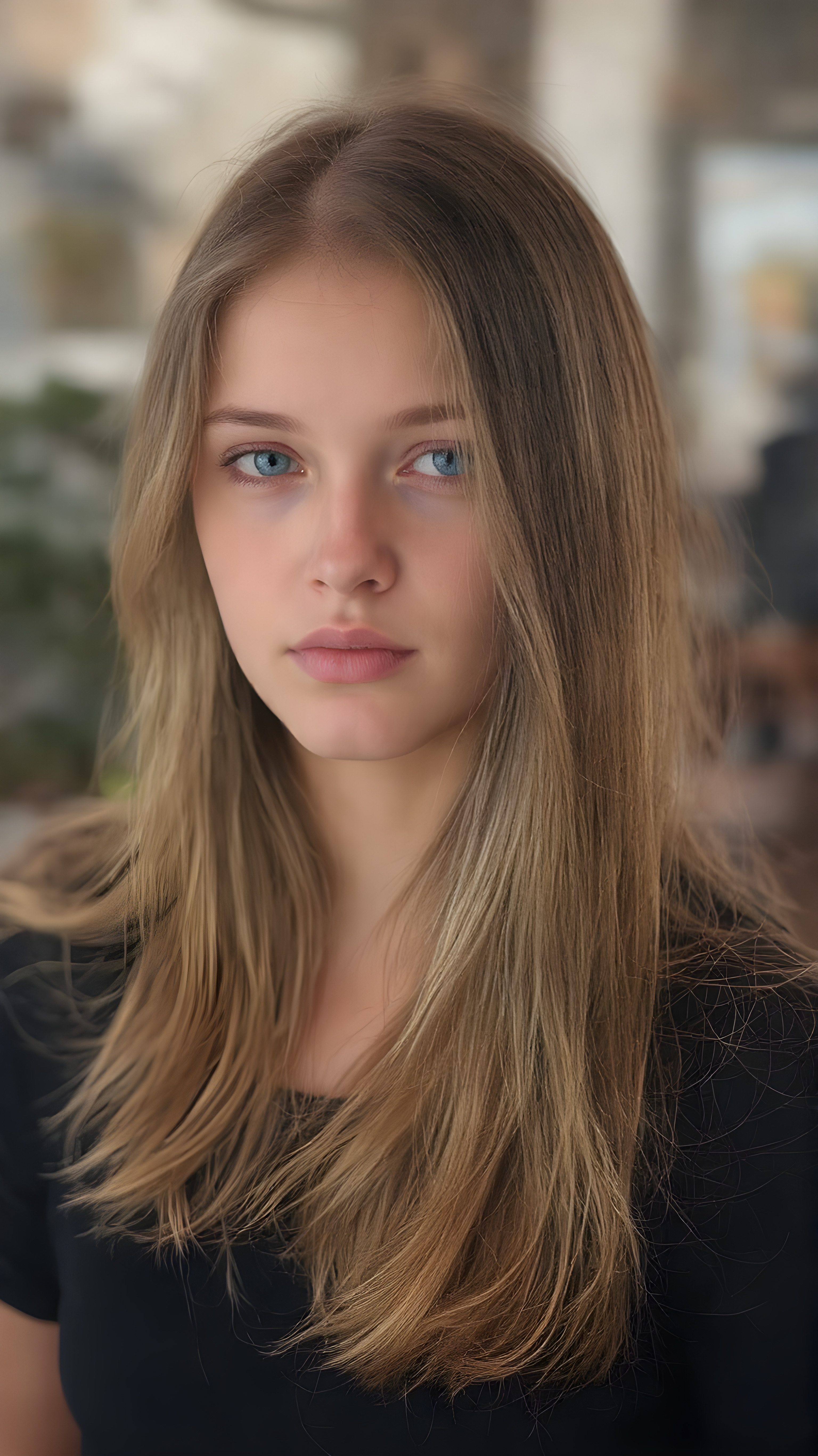 a beautiful, young teen girl, ((soft light brown jet straight hair)) ((detailed and realistic hair)), ((detailed, realistic photo)) ((perfect curved body)) ((gorgeous)) ((stunning)) ((cute))