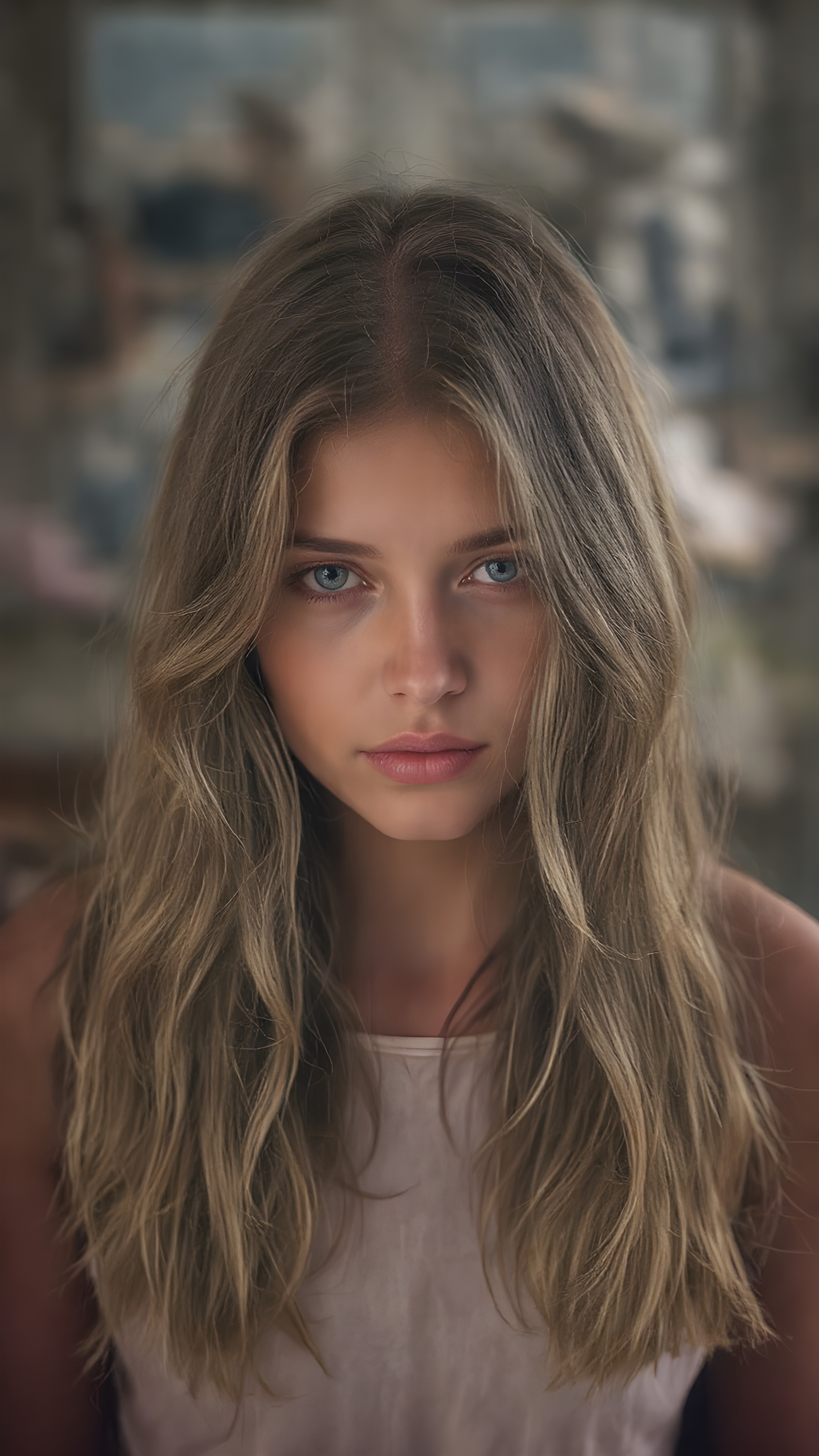 a detailed perfect portrait with pastel colors, young girl, 13 years old, she wears a hat, a ((coat)), she look at the viewer, detailed shiny straight soft long hair, full lips, round detailed face ((cute)), ((gorgeous)), upper body view