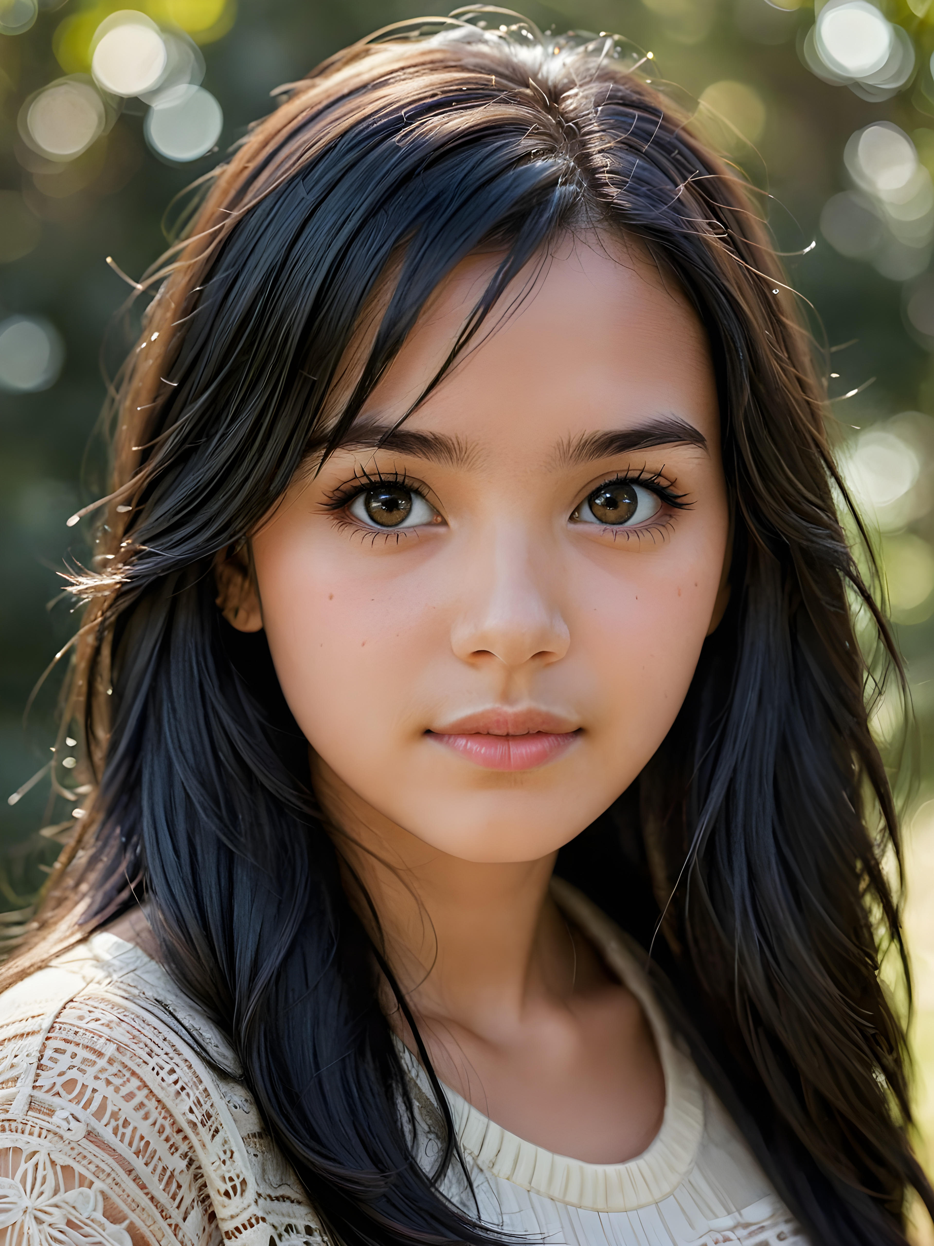 a beautifully drawn advanced ink portrait of a teen girl, sleek straight obsidian very soft black hair