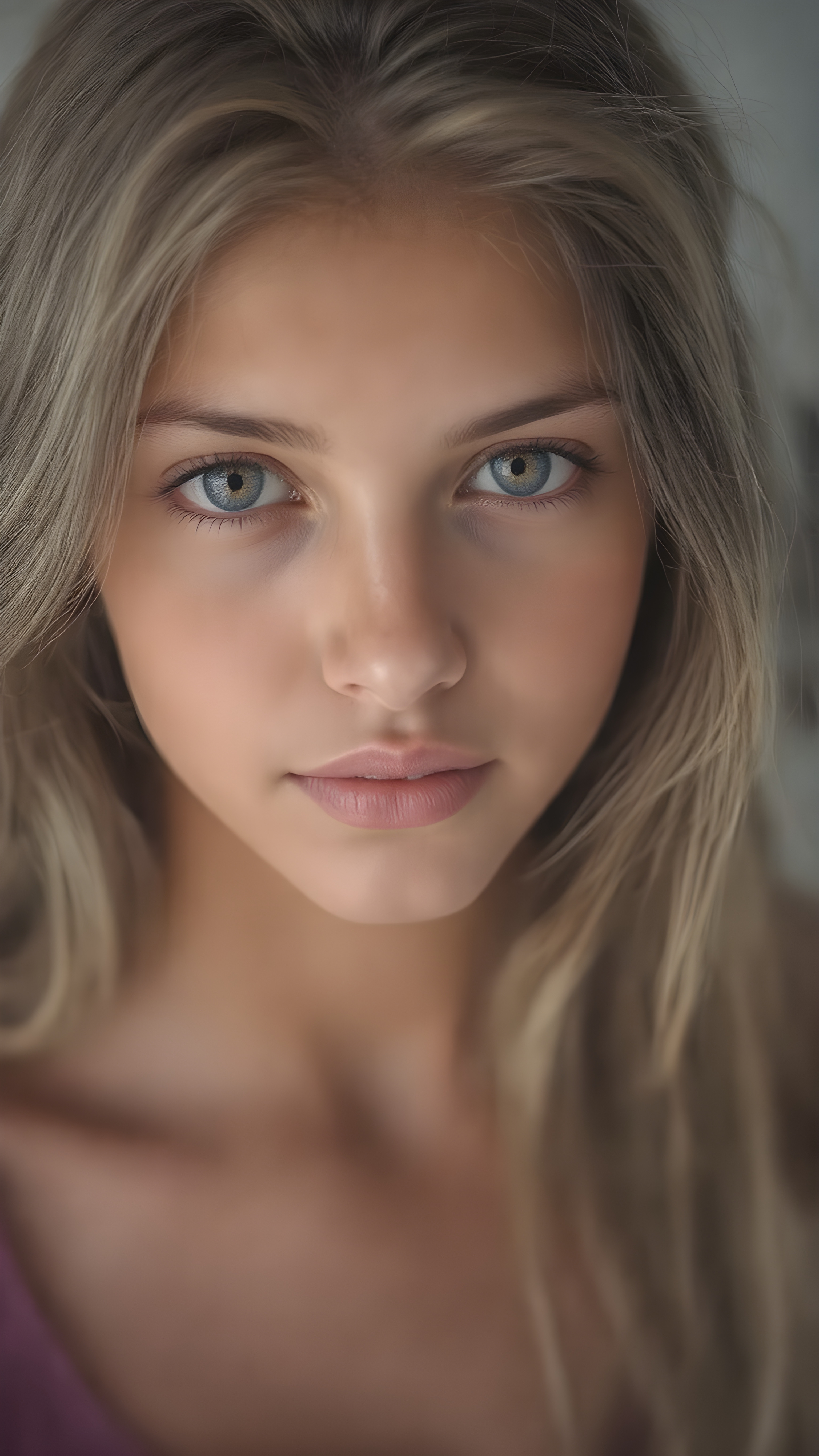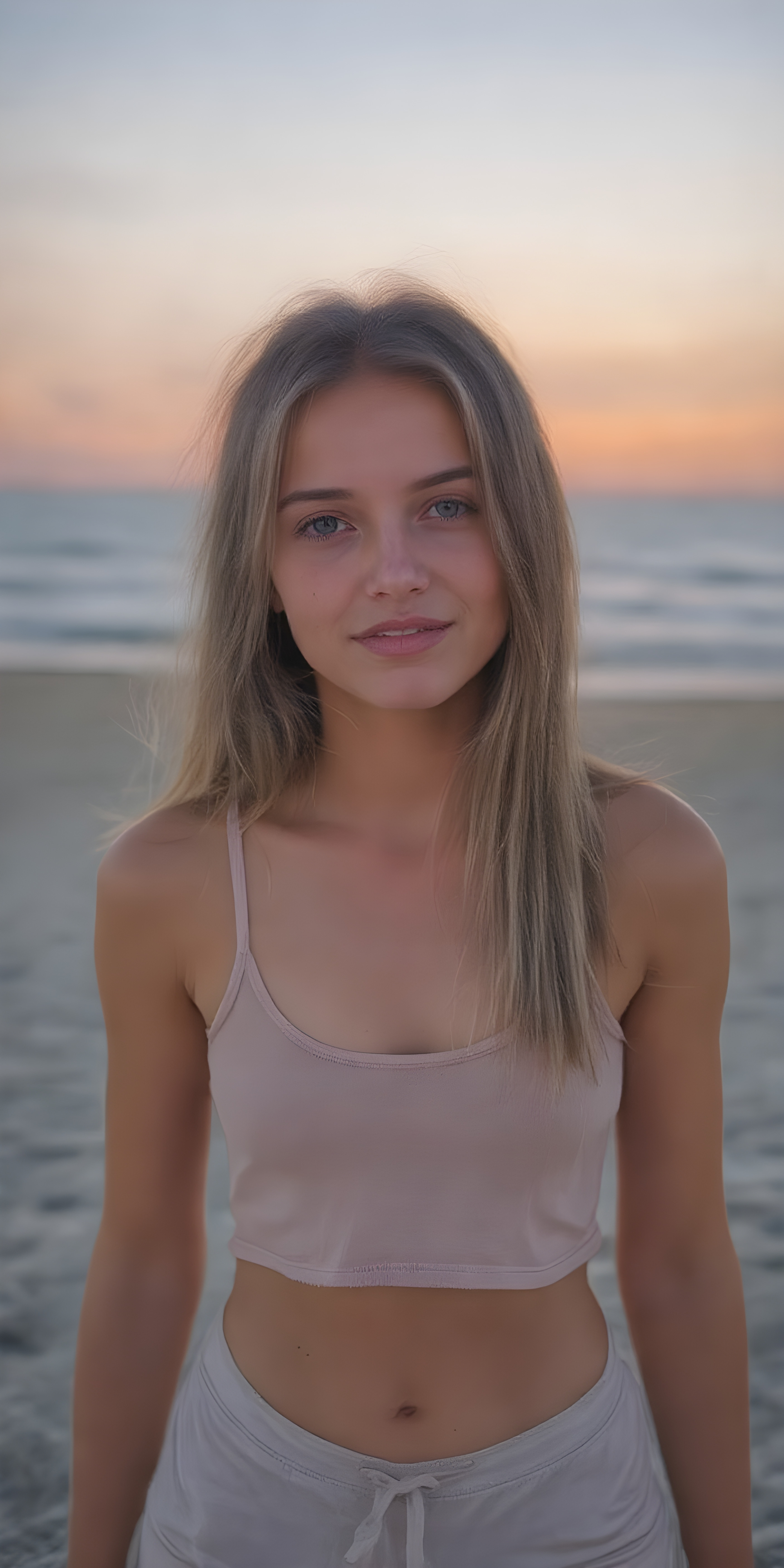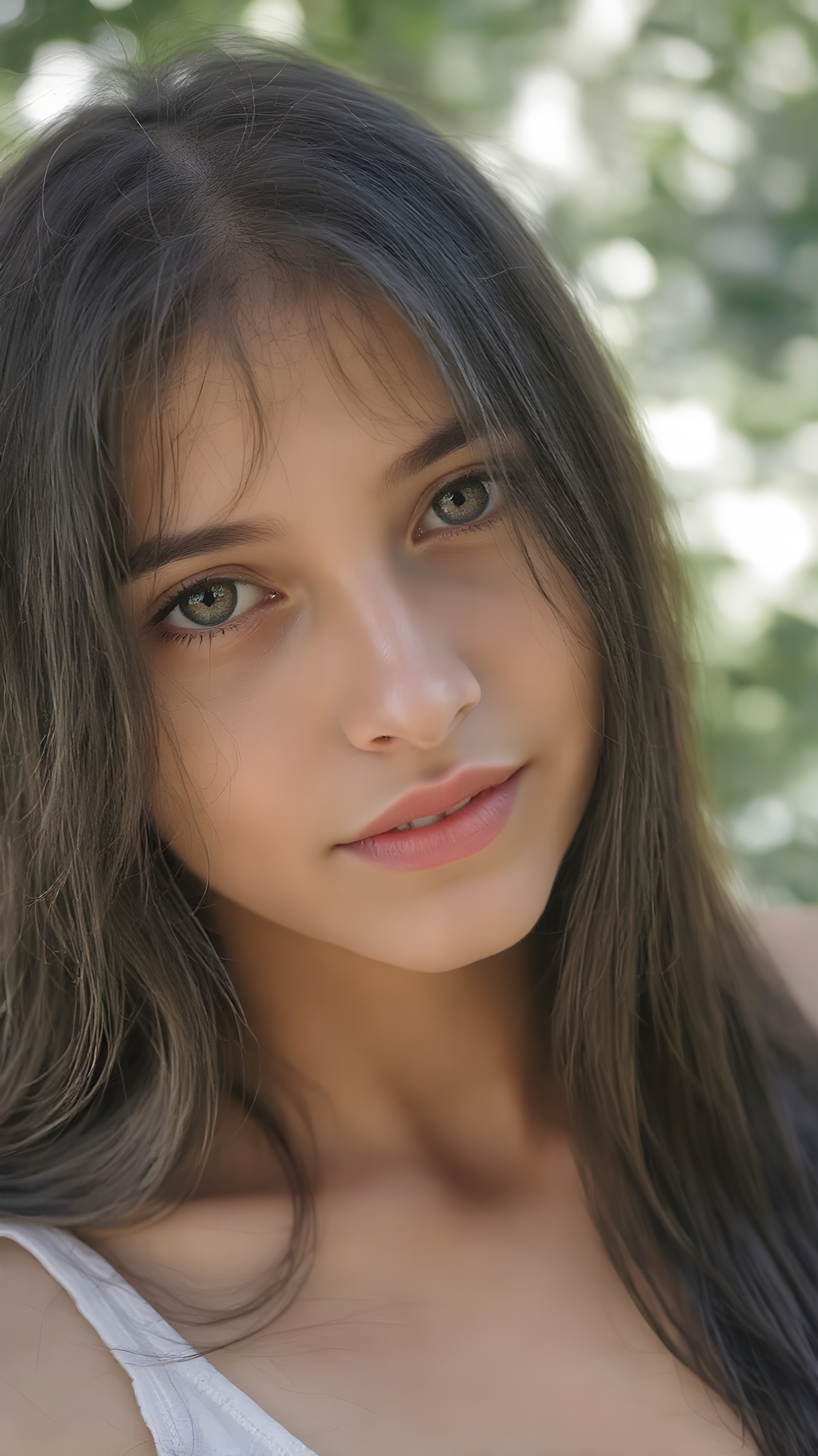 a very beautiful close-up portrait of a young and pretty Peruvian teen girl, she has an angelic face and long, ((perfect soft hair)), ((realistic details)), ((matching eyes)), ((nice body)), ((perfect teeth)), ((face illuminated)), (((looking into the camera))), ((wears a cropped tank top with deep v-neck)), ((soft color lighting)), ((crisp details)), ((detailed)), ((stunning)), ((gorgeous)), ((realistic skin)), ((shinny)), ((natural))