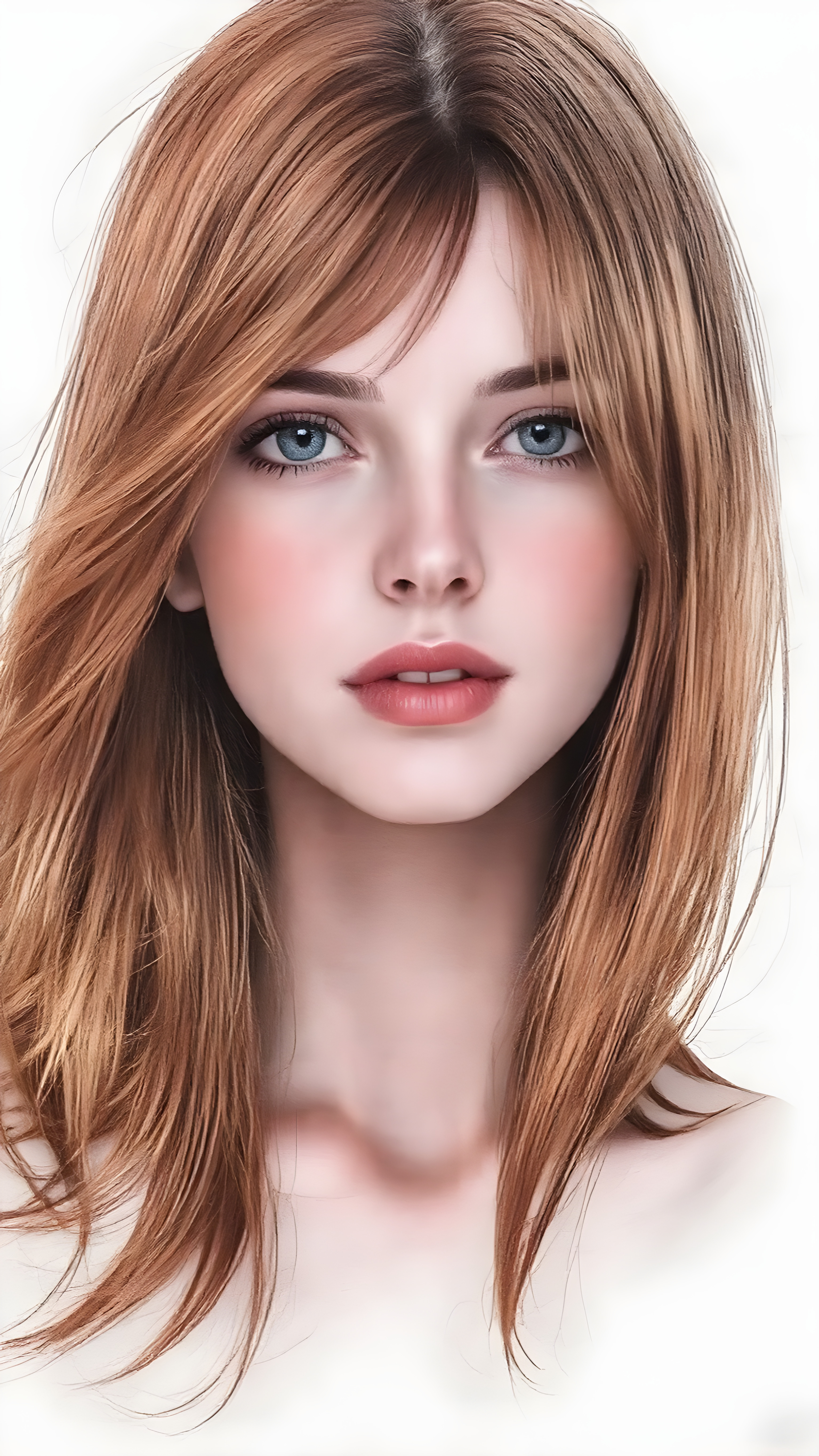 a (((professional ultra high resolution hand drawing))) capturing a (((vividly drawn natural teen girl))) with ((long, straight platinum white soft hair)) that gently frames her face, ((softly glowing skin)), ((full kissable red lips, open mouth, looks seductive)), accessorized with a sleek and minimalist ((cropped tank top made of fine fur)) that emphasizes her youthful energy, posed in a (((upper-body shot)))