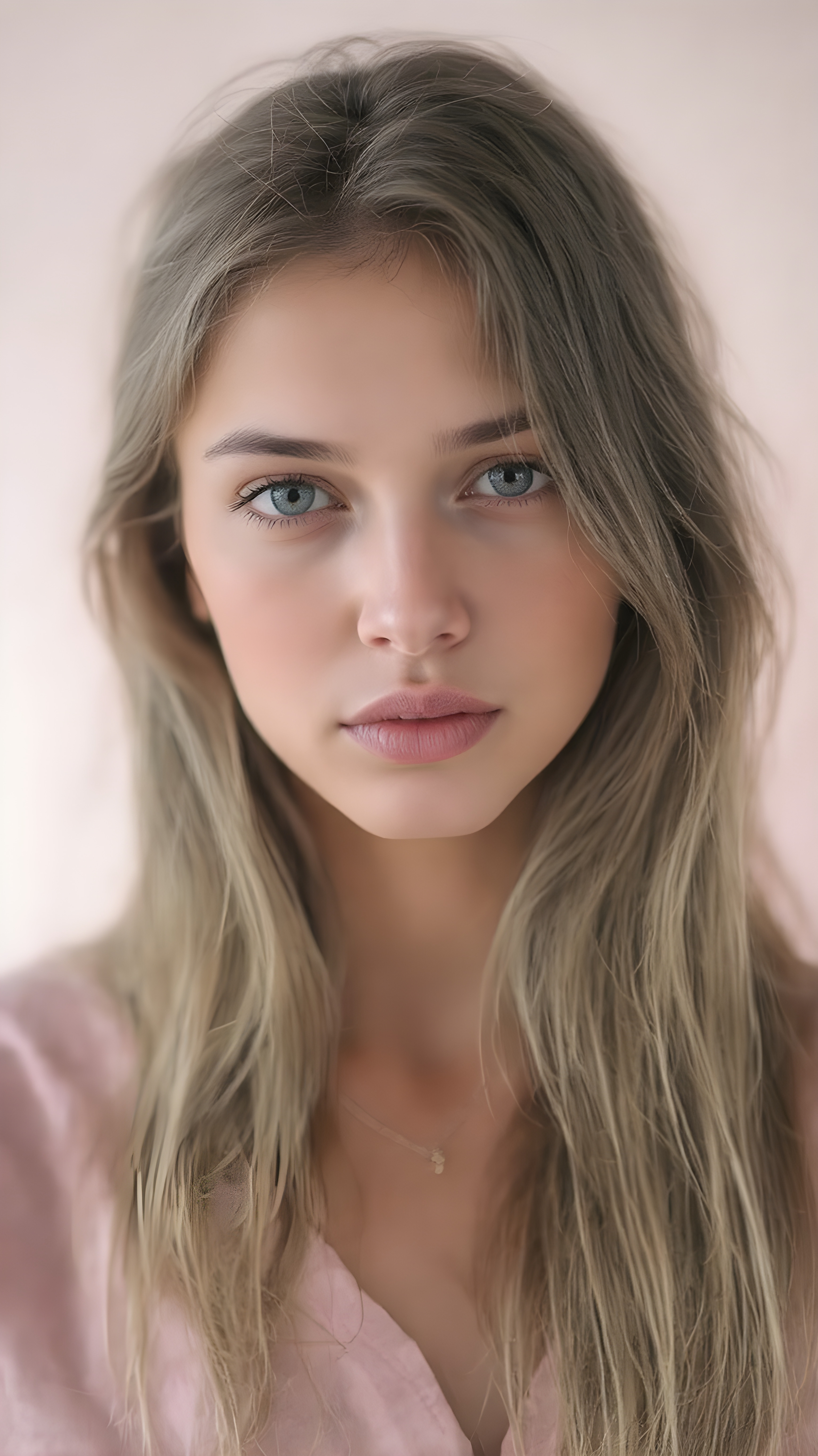 a (((vivid full body portrait))) showcasing a (((natural girl))) with long, (((detailed hair))), flowing down her shoulders and cascading down her back, her lips are full and painted in a (((light natural pink)), matching eyes she’s wearing a (((cotton shirt))), and a (((natural-toned body))), adorned with (((delicate hand and finger tattoos))), that give off a (((soft, pastel glow))). Her attire is (((comfortable, natural, and elegant))). She exudes a (((natural beauty))), with a (((light natural pink complexion))), and (((a soft, pastel pink expression))), that complements her (((vibrant, natural eyes))) beautifully. The scene is captured in a (((high-resolution, natural photograph))), with a (((soft, pastel pink light shining on her))) as the backdrop. Her posture is (((the most beautiful part of her body))), as it embodies (((Natural Beauty with a radiant glow))) that radiates an (((ethereal and alluring expression))), which gives off a (((subtle yet captivating vibe))).